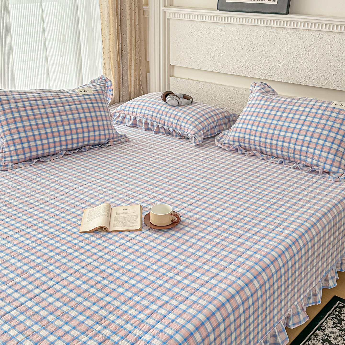 暖居 2026新款全棉纯棉色织榻榻米三件套四件套单件大炕盖支持定制 蓝格子