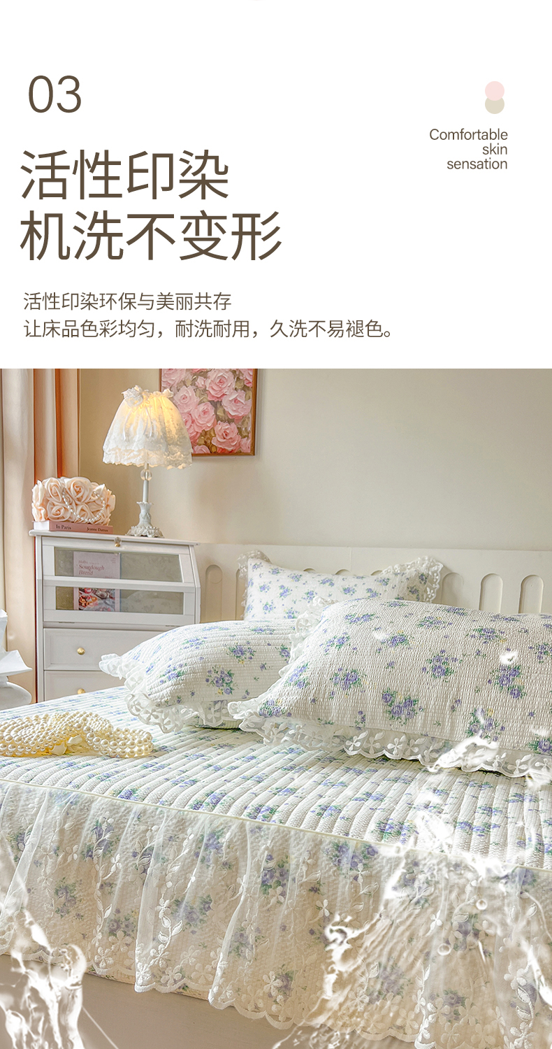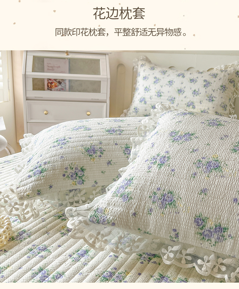 • 91家纺网 家纺一手货源 找家纺 网红馆(ck家纺) 2026新款泡泡棉印花床笠三件套 紫色恋人