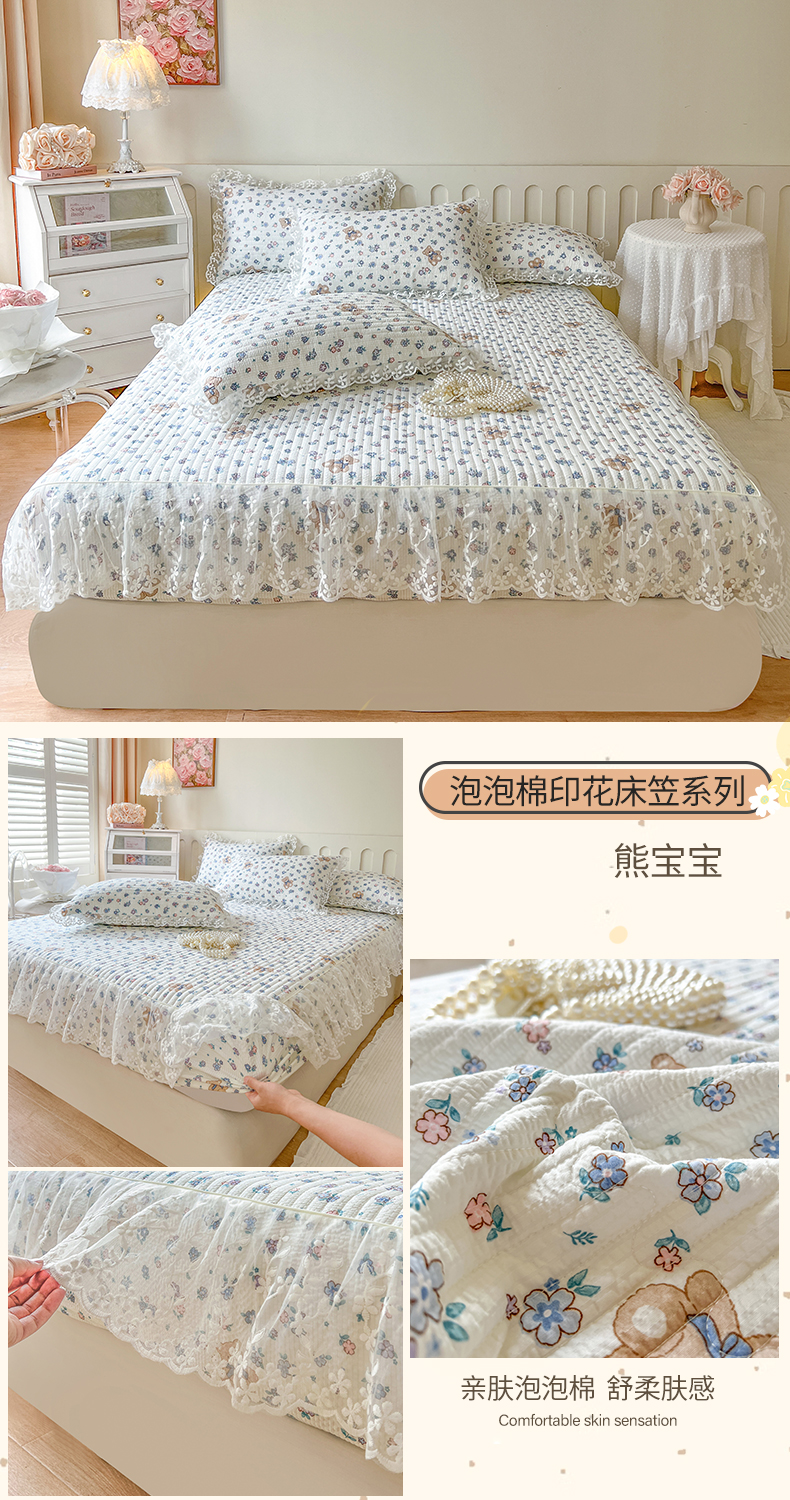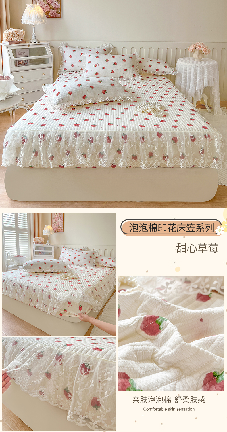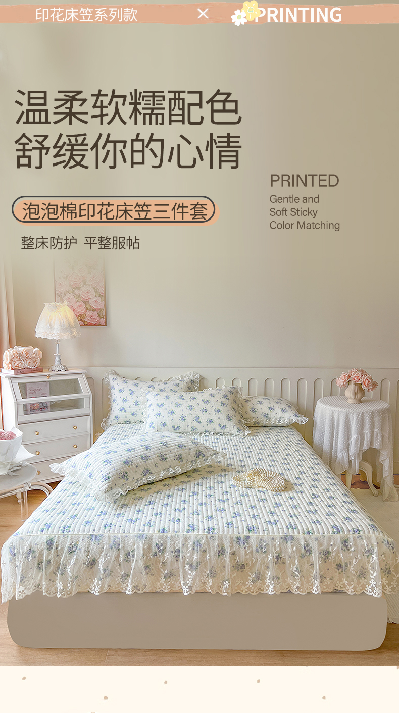 (总)网红馆(ck家纺) 2026新款泡泡棉印花床笠三件套,花儿朵朵,花莫,甜心草莓,小清新,熊宝宝,悠悠花海,紫色恋人