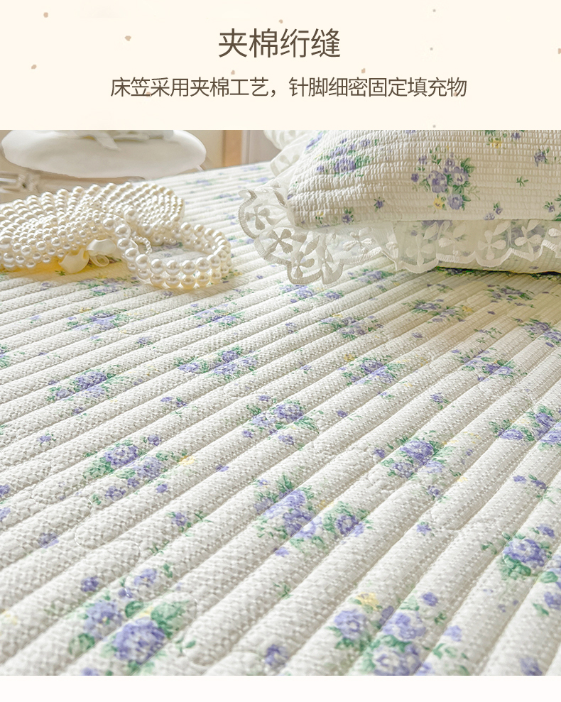 网红馆(ck家纺) 2026新款泡泡棉印花床笠三件套 紫色恋人