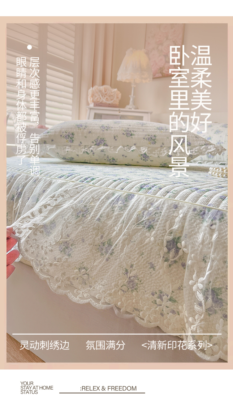 • 91家纺网 家纺一手货源 找家纺 (总)网红馆(ck家纺) 2026新款全棉蕾丝花边床裙款床笠晨暮花间系列,绯红,粉色,麦绿,米色,浅紫,雾蓝