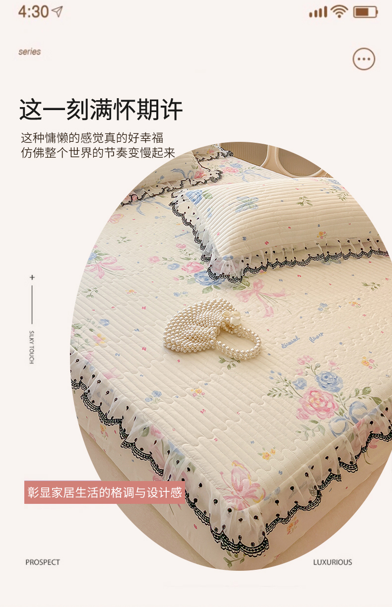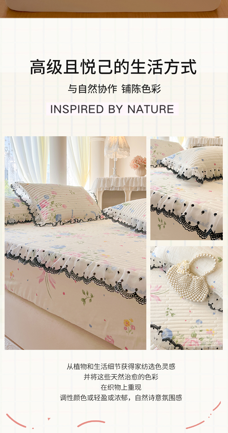 • 91家纺网 家纺一手货源 找家纺 (总)网红馆(ck家纺) 2026新款全棉蕾丝花边床裙款床笠晨暮花间系列,绯红,粉色,麦绿,米色,浅紫,雾蓝