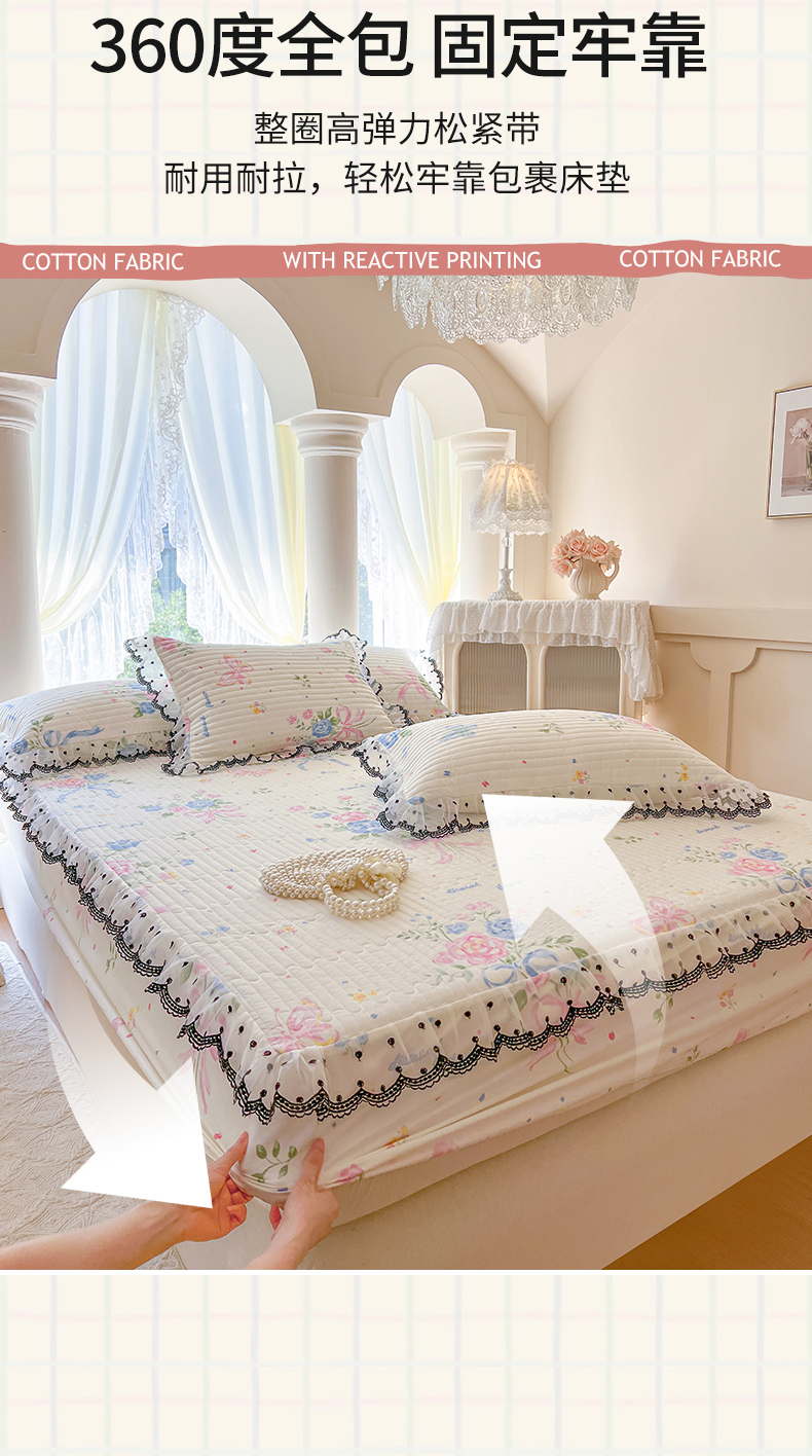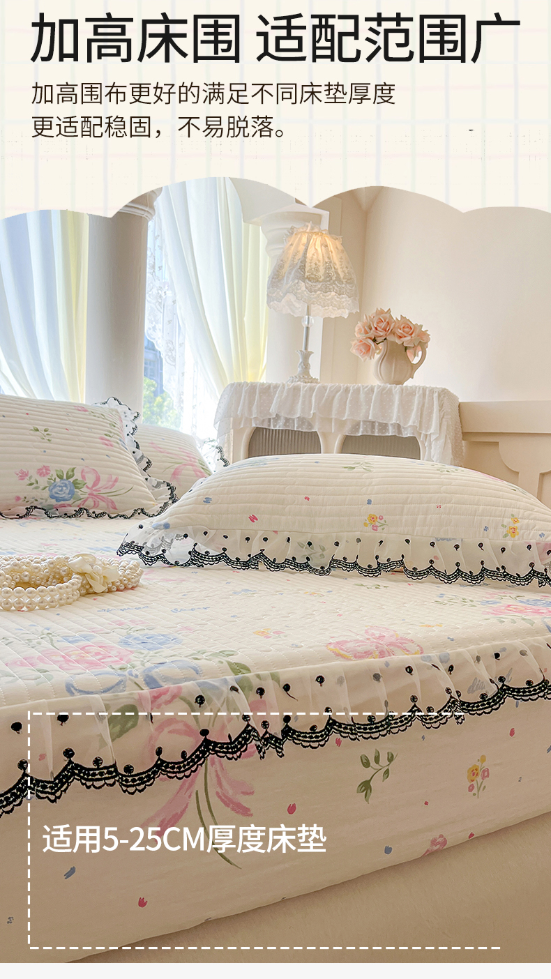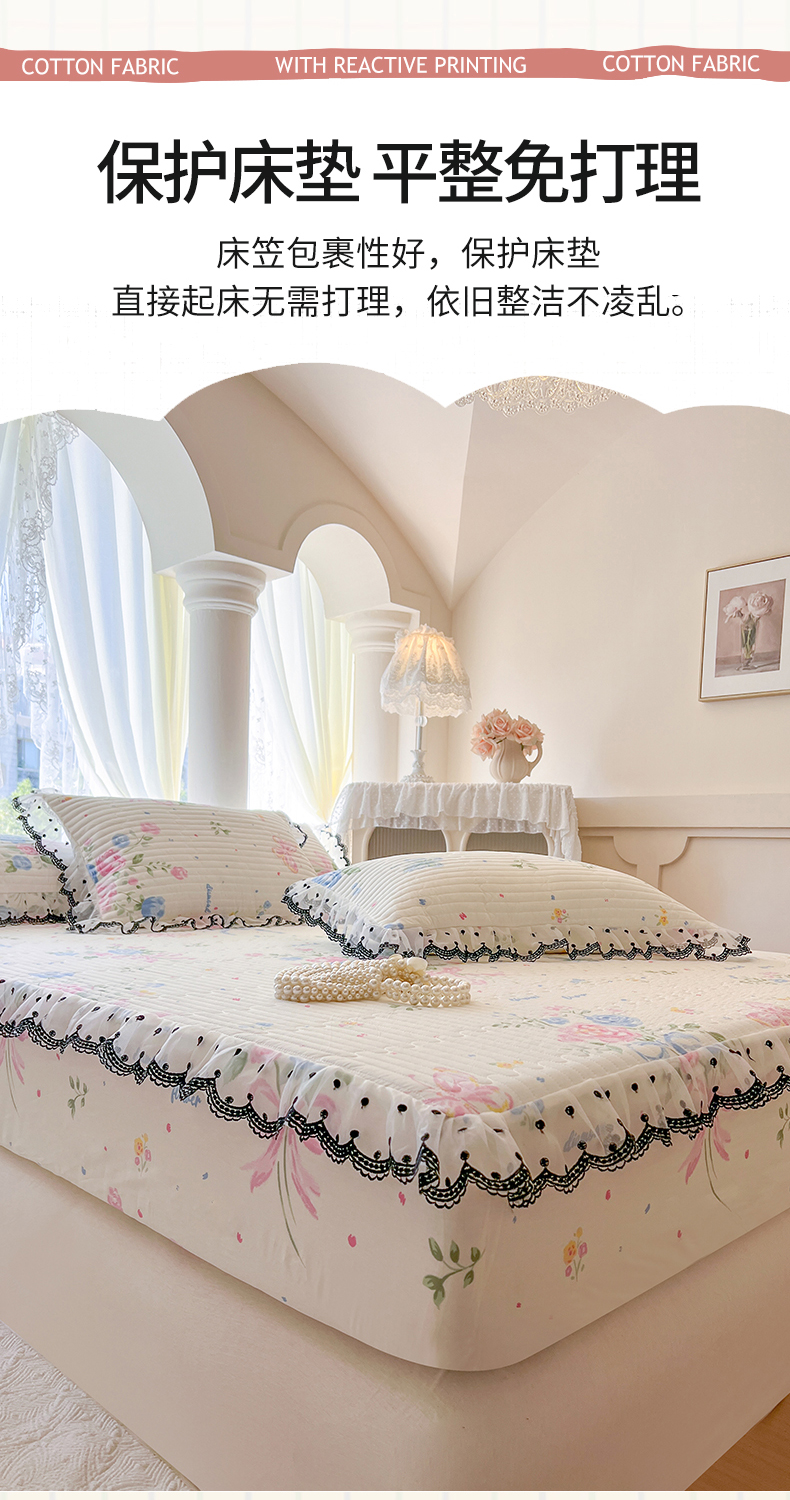 (总)网红馆(ck家纺) 2026新款全棉蕾丝花边床裙款床笠晨暮花间系列,绯红,粉色,麦绿,米色,浅紫,雾蓝