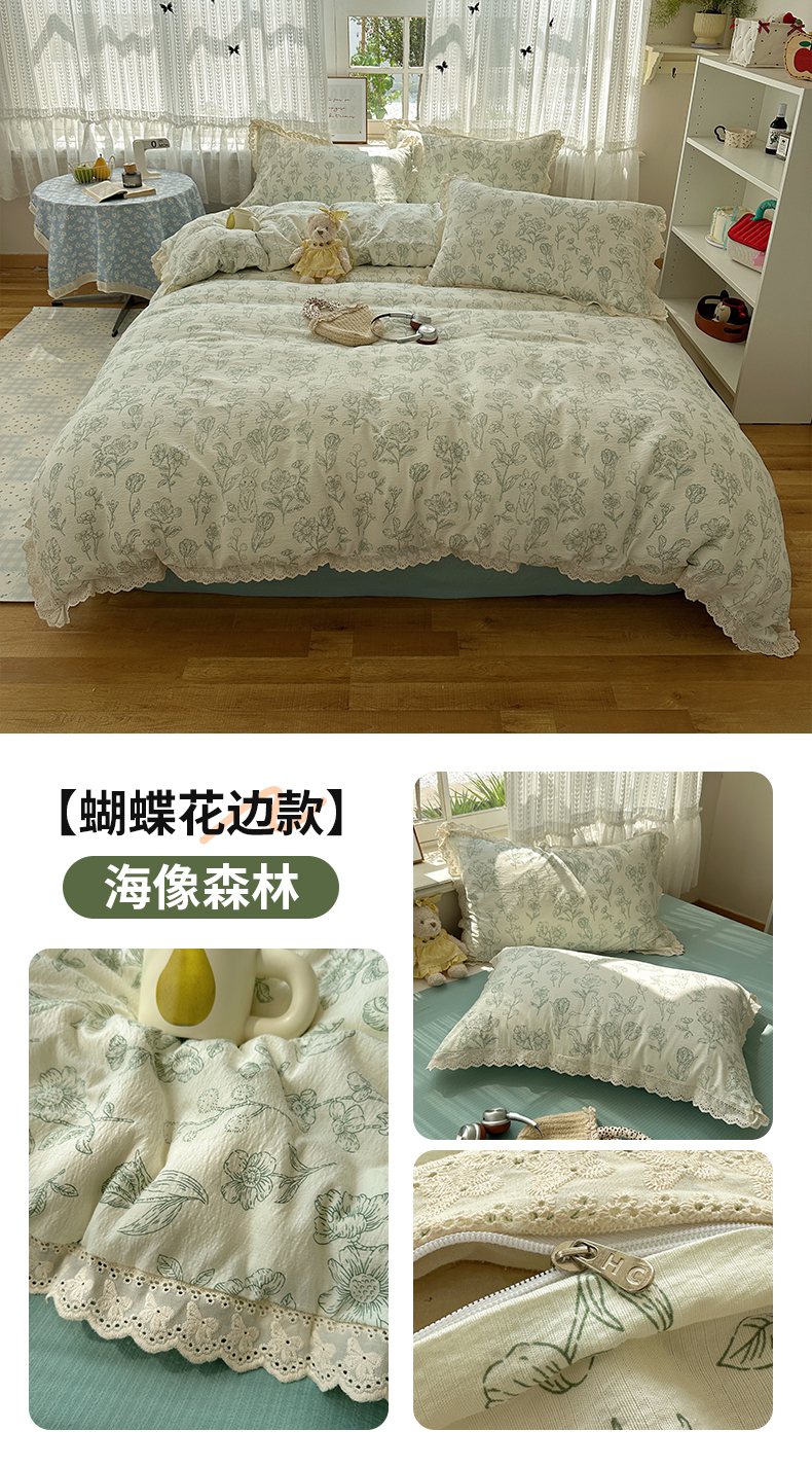 当前位置: 91家纺网 > 商品网购 > 床品套件 > 四件套 > 其它四件套 > 韩巢家纺 2026新款蝴蝶花边销款四件套 海像森林【蝴蝶花边款】