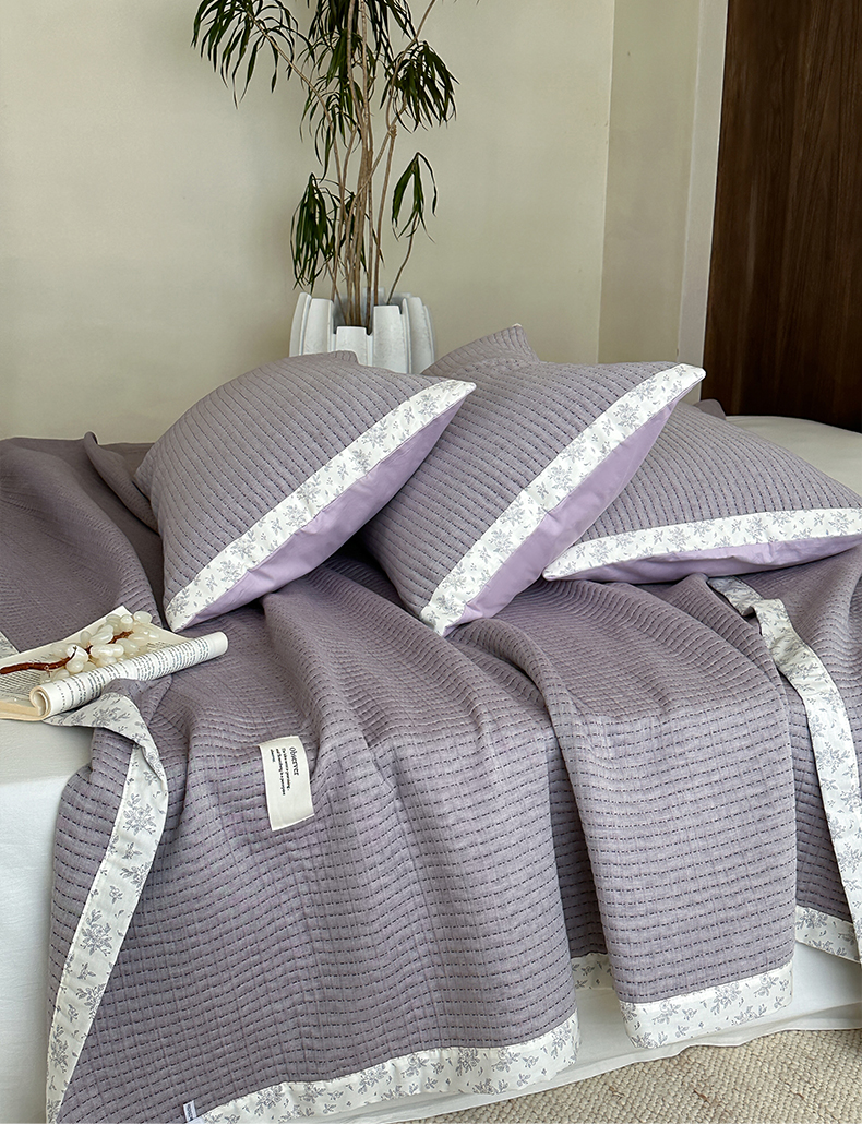 商品名称:漫时光 2026新款全棉穿绳提花床盖-慢织 慢织-紫絮
