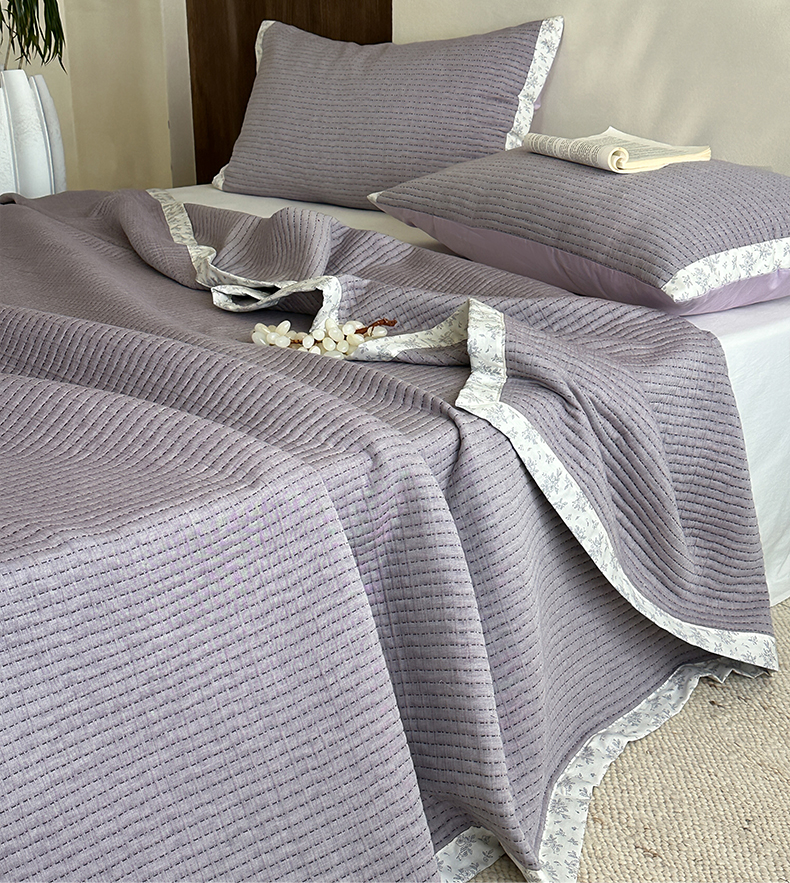 漫时光 2026新款全棉穿绳提花床盖-慢织 慢织-紫絮