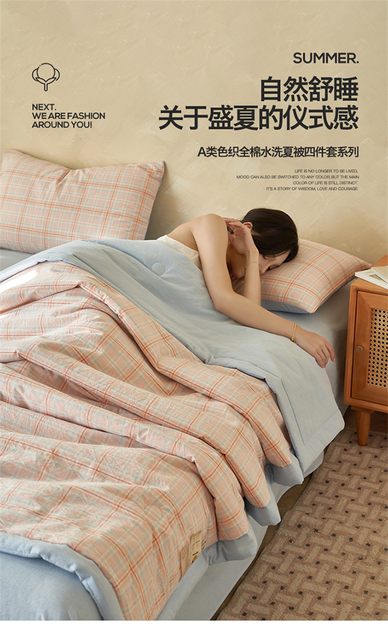 当前位置: 91家纺网 > 商品网购 > 床品套件 > 四件套 > 夏被四件套 > 恒爱家纺 2026新款A类色织全棉水洗夏被四件套 NS春野-桔