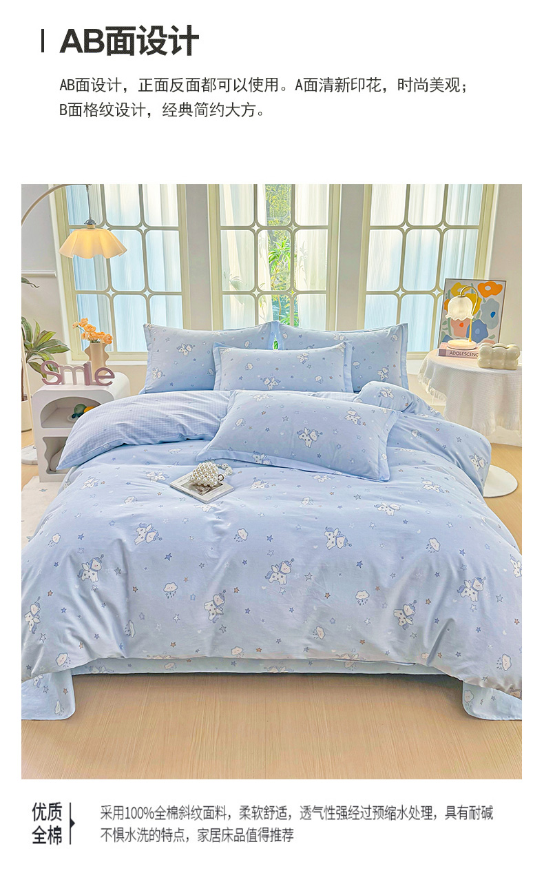 • 91家纺网 家纺一手货源 找家纺 (总)安逸家纺 2026新款12868 全棉纯棉床单四件套学生宿舍纯棉床单款三件套,美伊娜多,豹纹KT粉,草莓派,繁星,风华正茂,格拉花园,桂馥兰香,花田妙语,花园狮子狗,凯蒂宝贝,蓝沫,蓝色星星人,蓝星动物园,蕾拉果园,罗德里,洛克庄园,洛琳粉,梦幻格,米兰印象,青绿银杏,苏糖咖,甜心花朵,微风徐徐,心动旋律,星辰大海,星星独角兽,徐徐花开,雪哈汪,幽兰花梦,釉色浮光