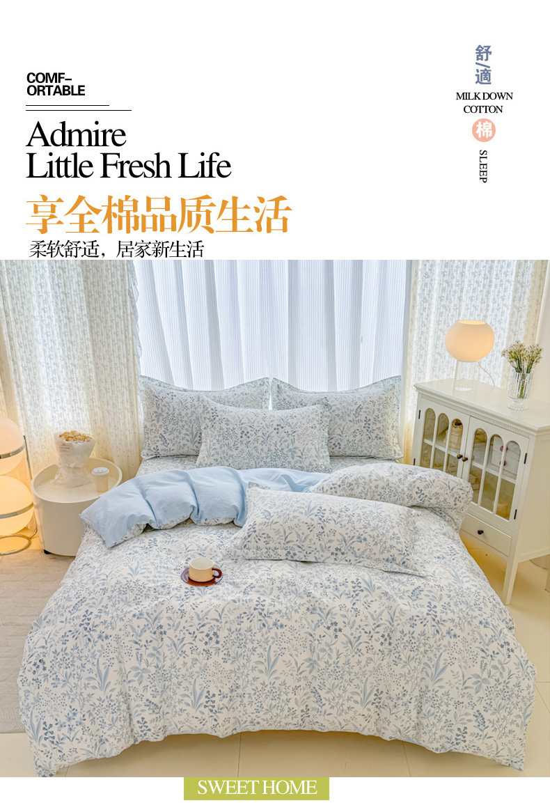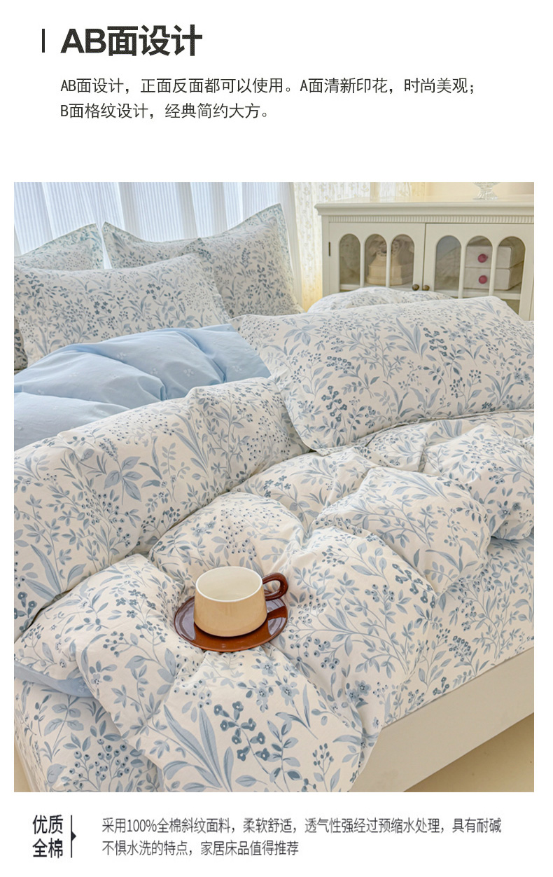 当前位置: 91家纺网 > 商品网购 > 床品套件 > 四件套 > 全棉普通四件套 > 安逸家纺 2026新款12868全棉纯棉床笠四件套床罩学生纯棉床笠款三件套 蓝沫