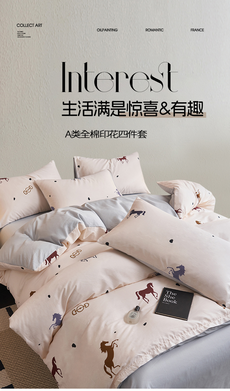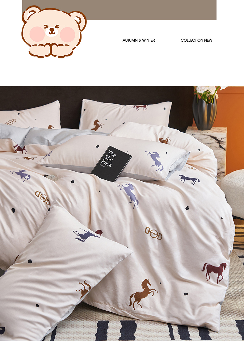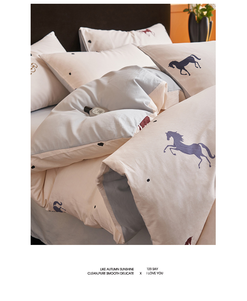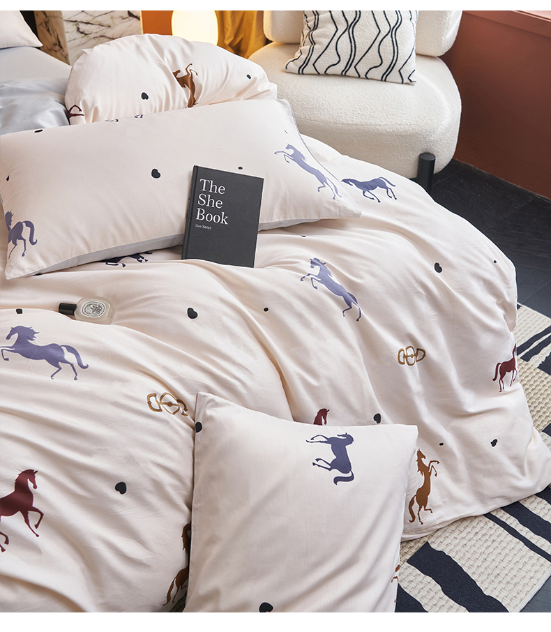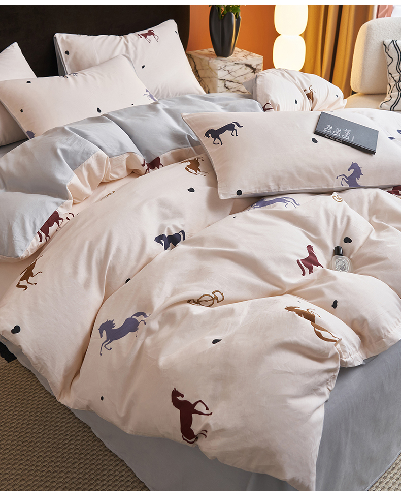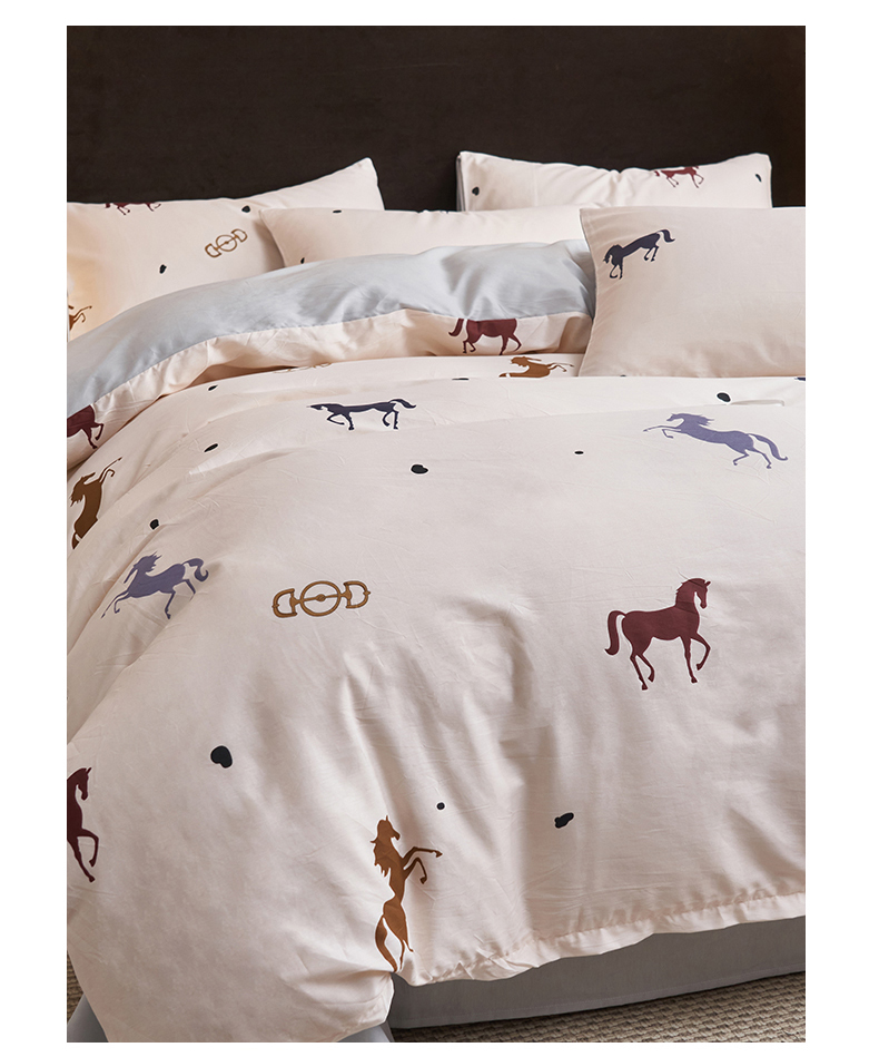 恒爱家纺 2026新款全棉12868印花四件套 马到成功