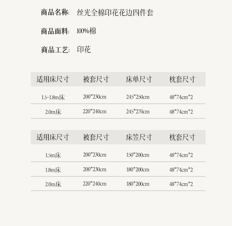 【床单款】2.0四件套-被套220x240 | ¥180.00 |