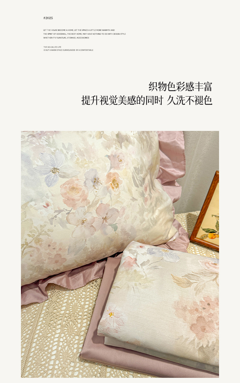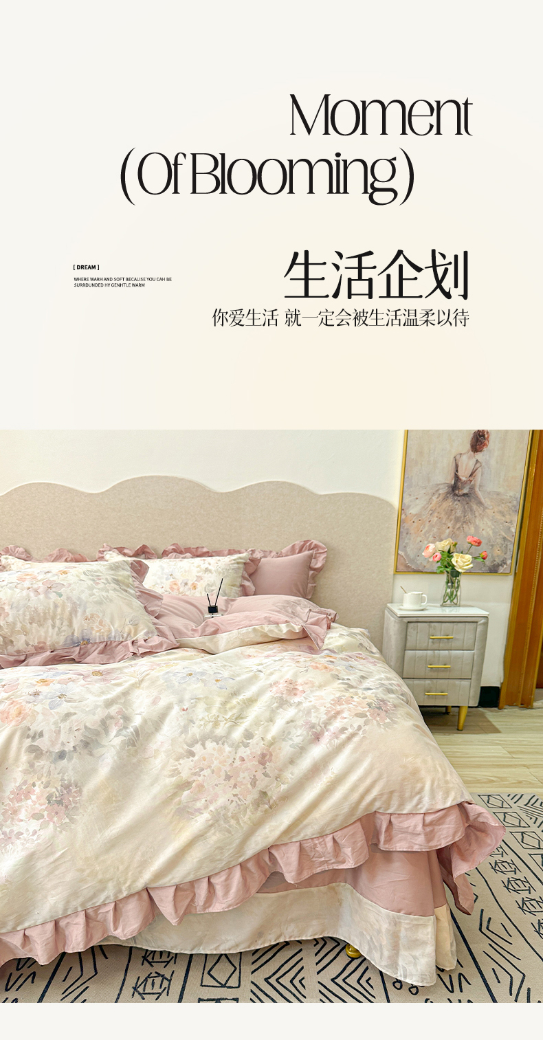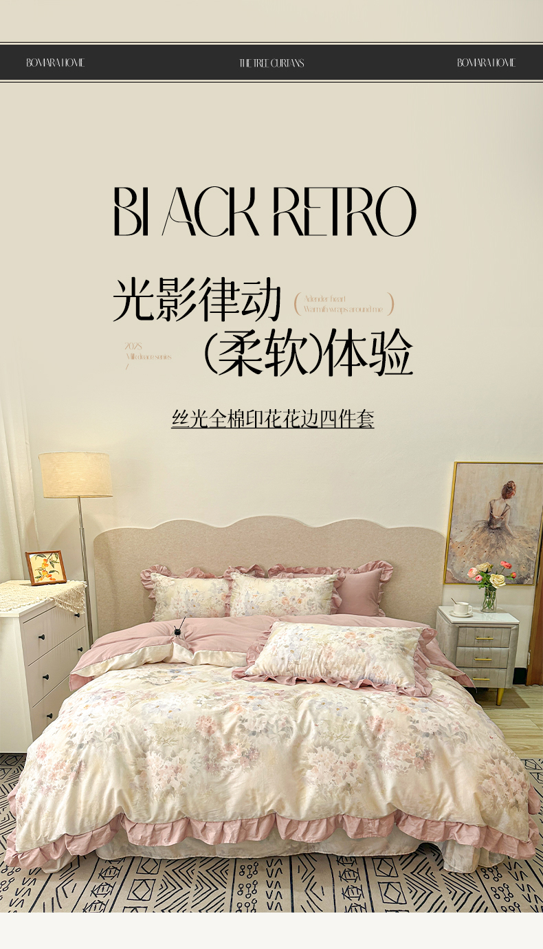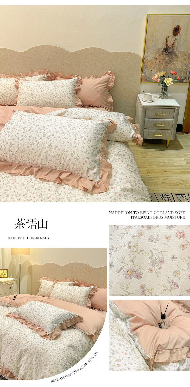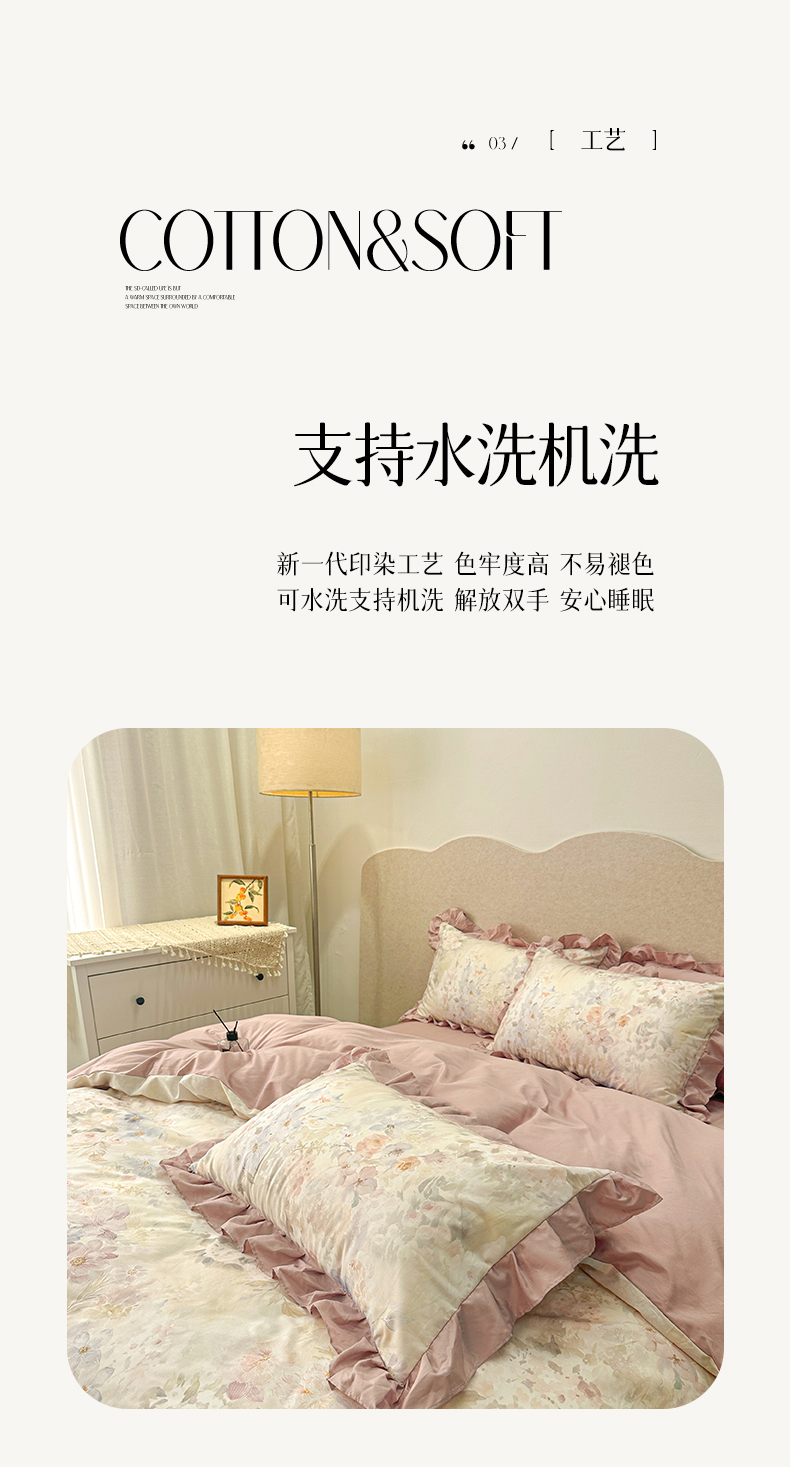 当前位置: 91家纺网 > 商品网购 > 床品套件 > 四件套 > 全棉普通四件套 > 橙艺家居 2026新款丝光全棉纯棉印花花边四件套-爱丽丝柔棉 严格控价,券后、活动后标准不得低于248元,以此类推。 花影里