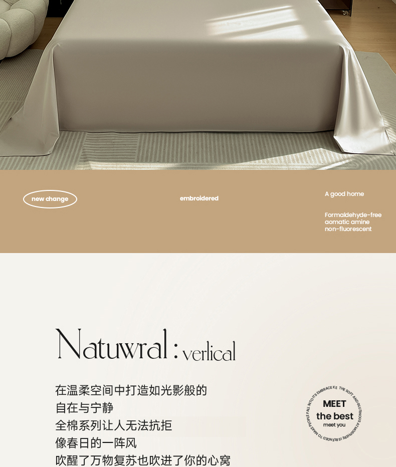 • 91家纺网 家纺一手货源 找家纺 润肤居 2026新款A类全棉13372单床单 摩卡