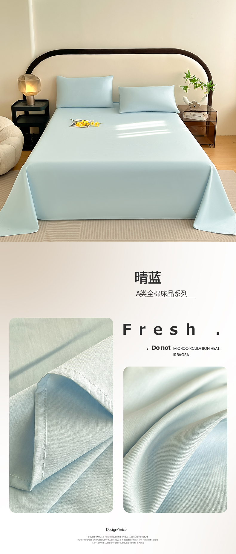 • 91家纺网 家纺一手货源 找家纺 (总)润肤居 2026新款A类全棉13372单床单,茶绿,粉白,粉瓷,摩卡,晴蓝,杏仁