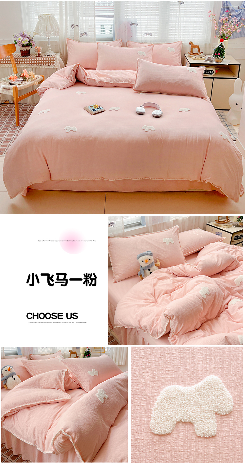 当前位置: 91家纺网 > 商品网购 > 床品套件 > 四件套 > 其它四件套 > 富米莱(原臻工厂) 2026新款奶呼呼云感纱贝壳边毛巾绣四件套-小飞马 小飞马一咖