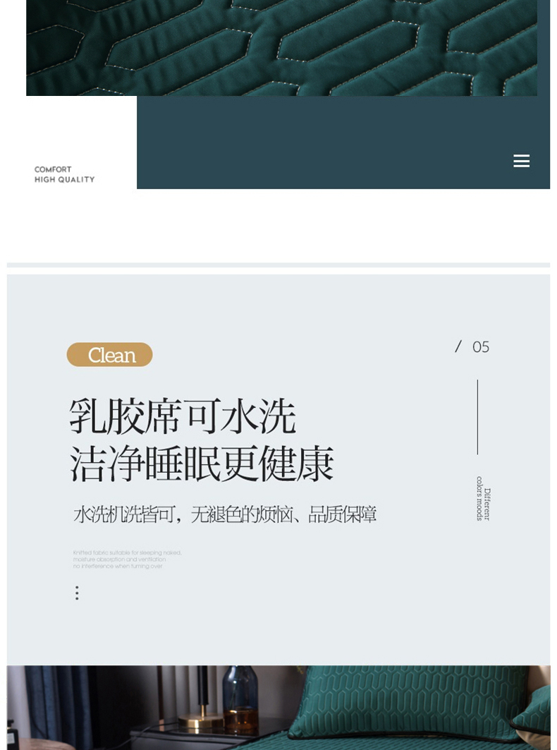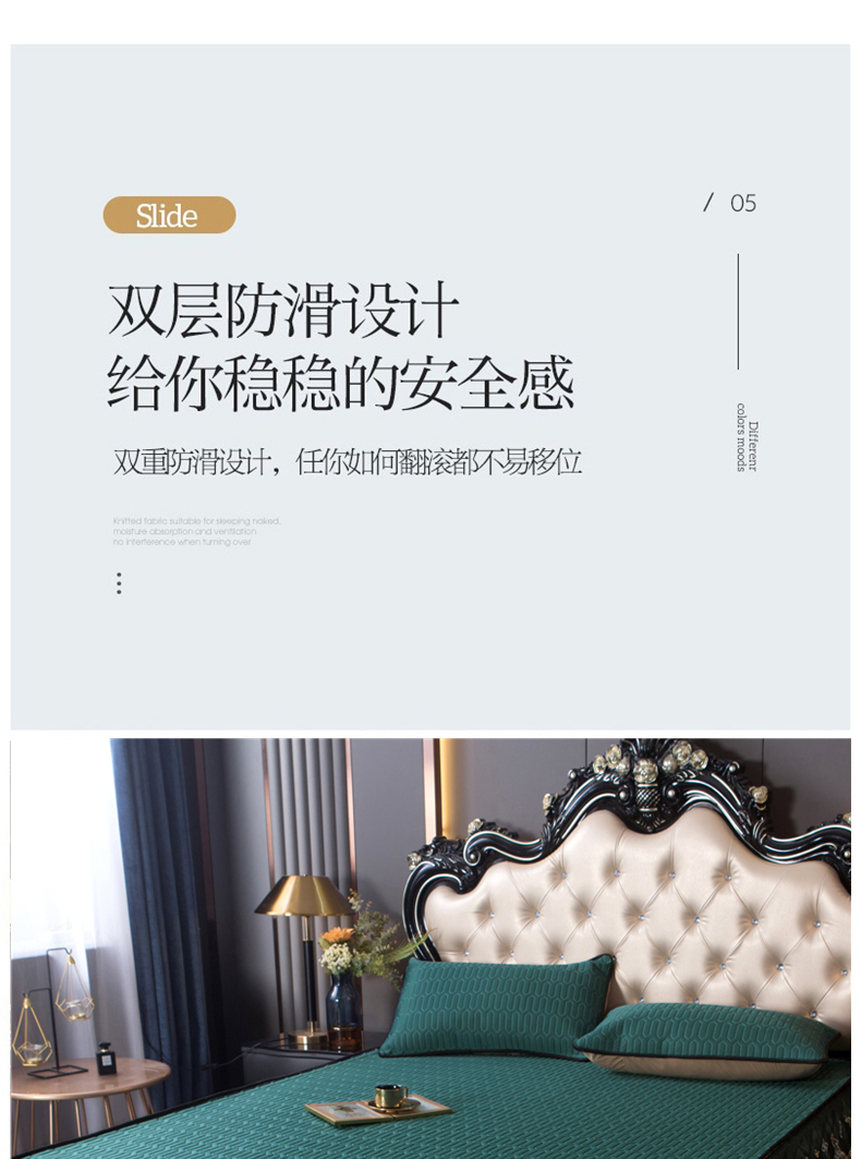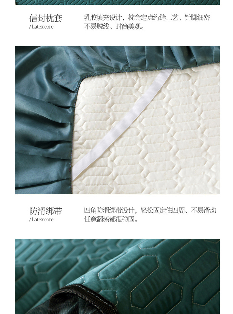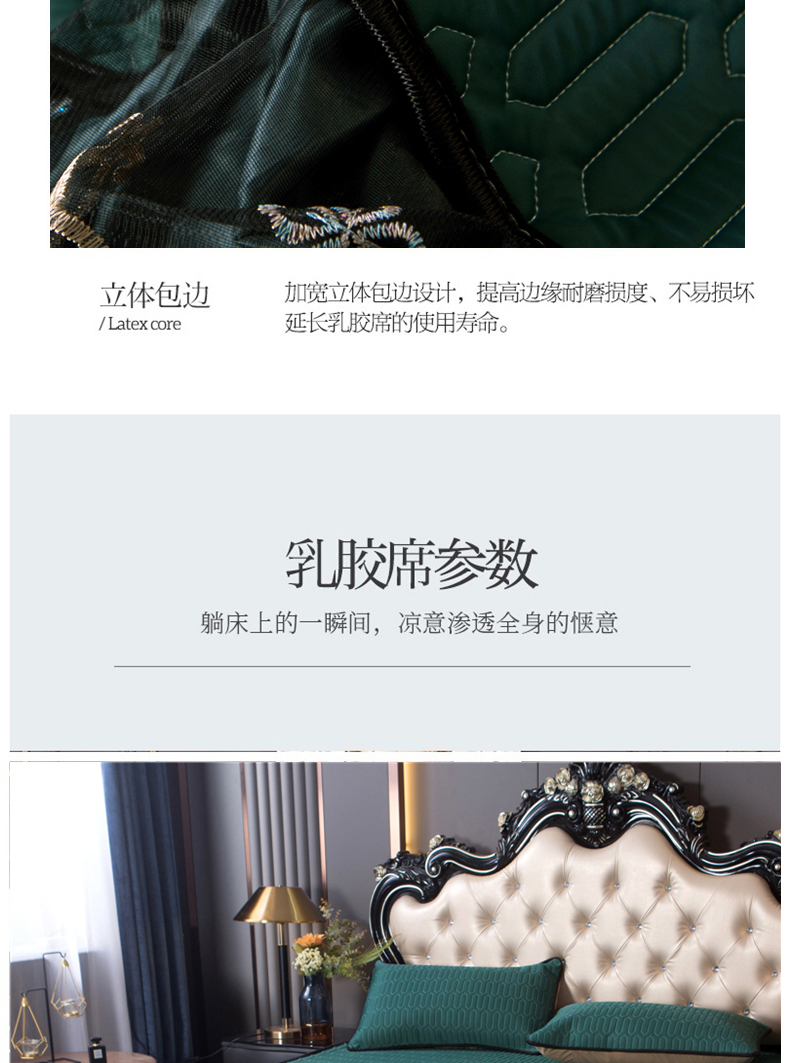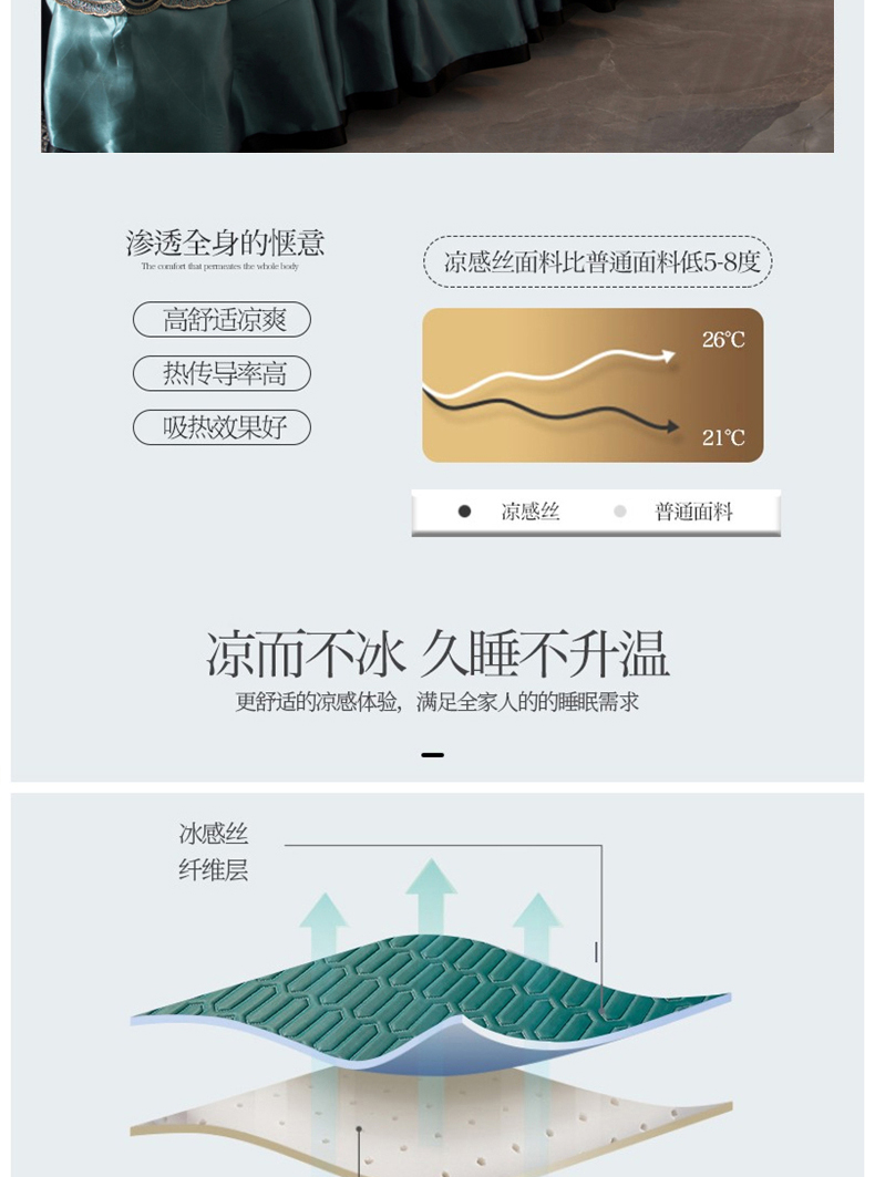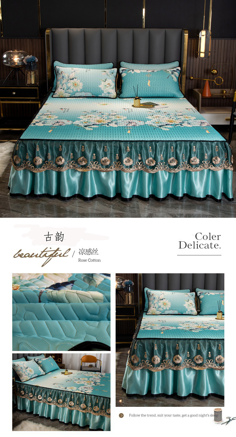 商品名称:能好家纺 2026春夏新款纯色+印花凉感丝乳胶凉席床裙款三件套 墨绿