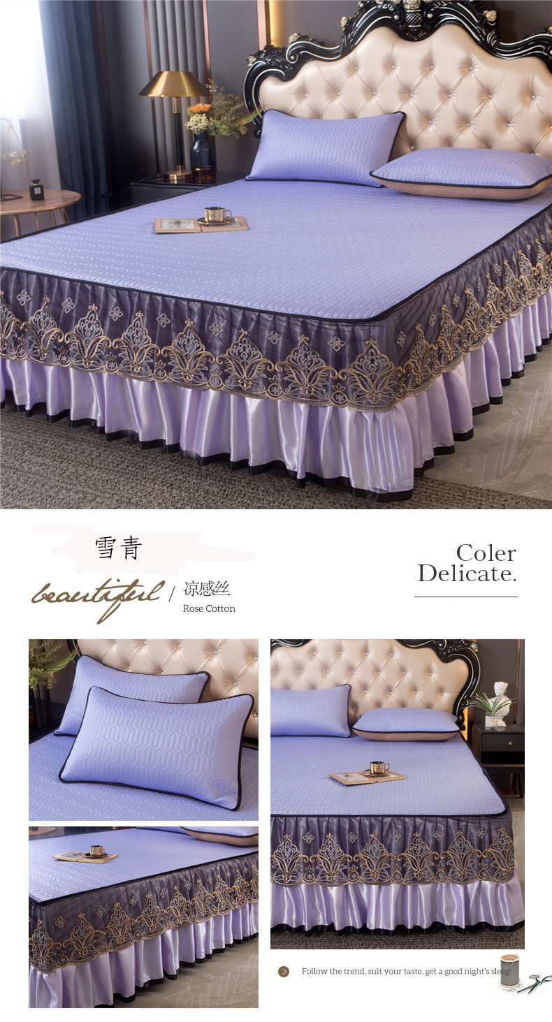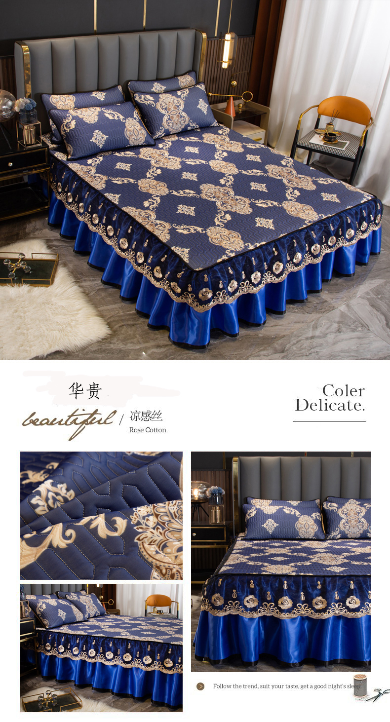 (总)2024加厚夹棉水晶绒床裙绗缝蕾丝花边牛奶绒法莱绒宝宝绒单床裙,宝石兰,藏青,豆沙,粉玉,灰,酒红,墨绿,月光蓝