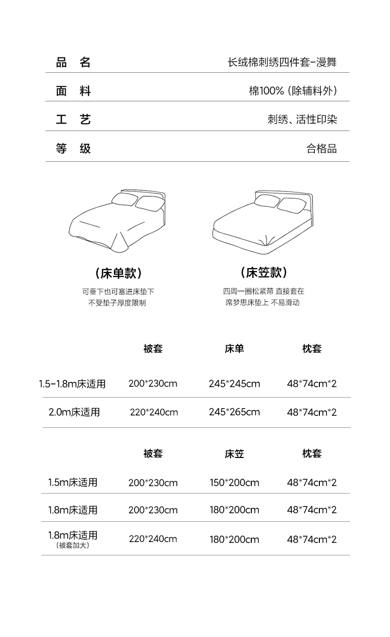 【床笠款】1.8四件套-被套200x230 | ¥165.00 |