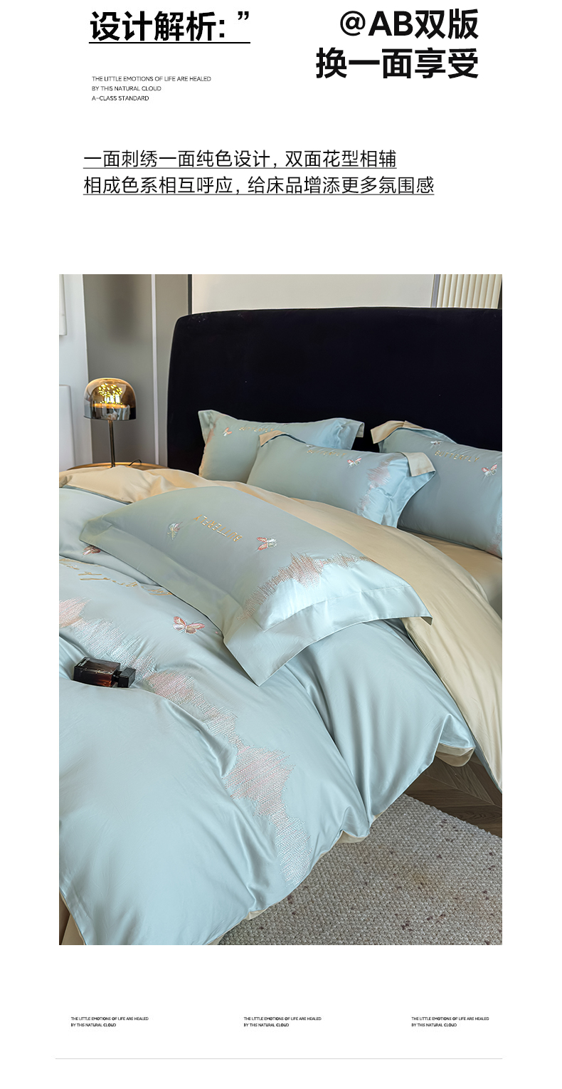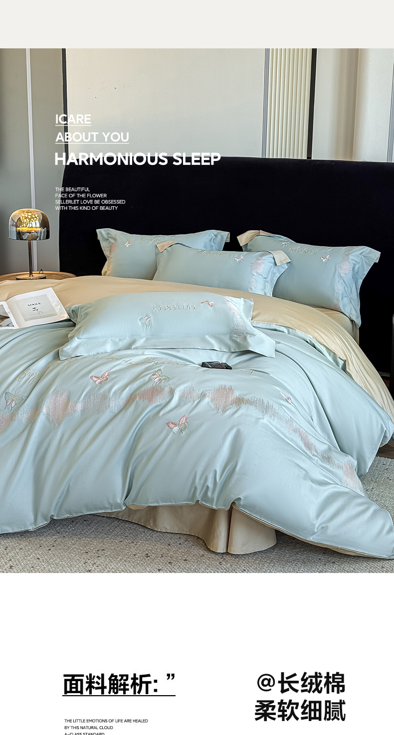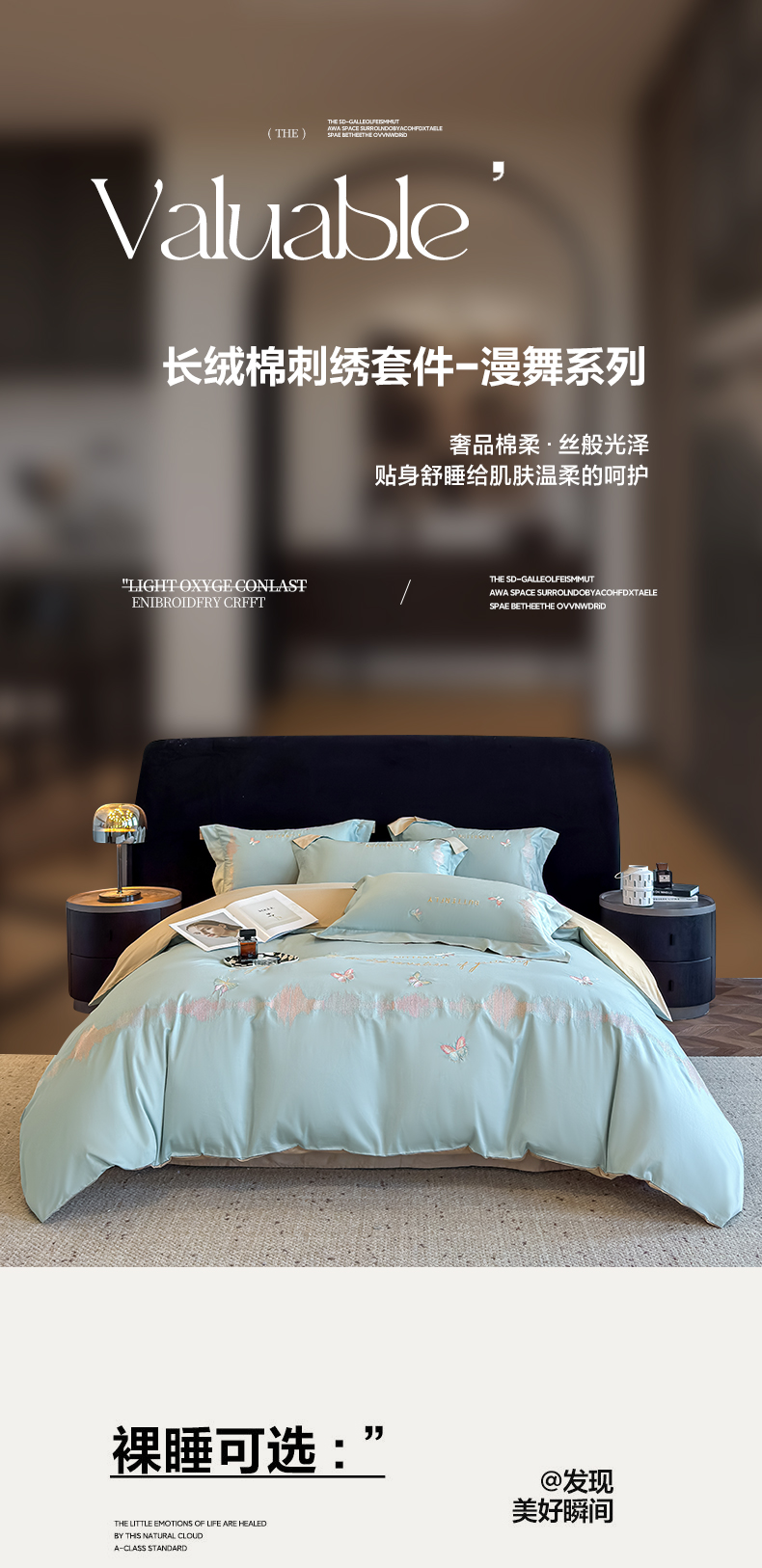 当前位置: 91家纺网 > 商品网购 > 床品套件 > 四件套 > 长绒棉四件套 > 欣宜家纺 2026春夏新款纯棉全棉长绒棉刺绣绣花高端礼盒四件套-漫舞 漫舞-飘蓝
