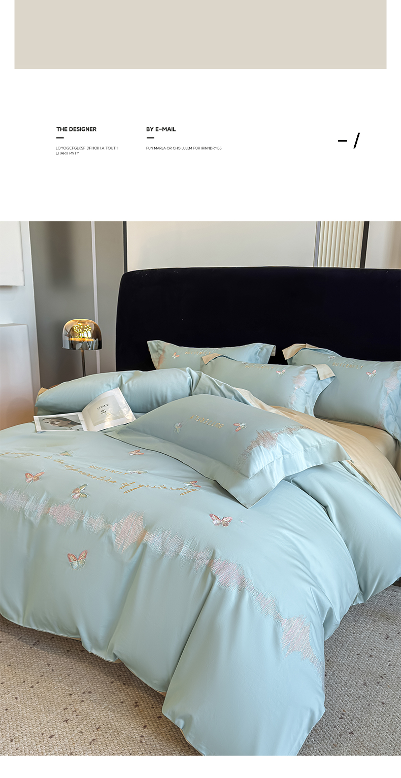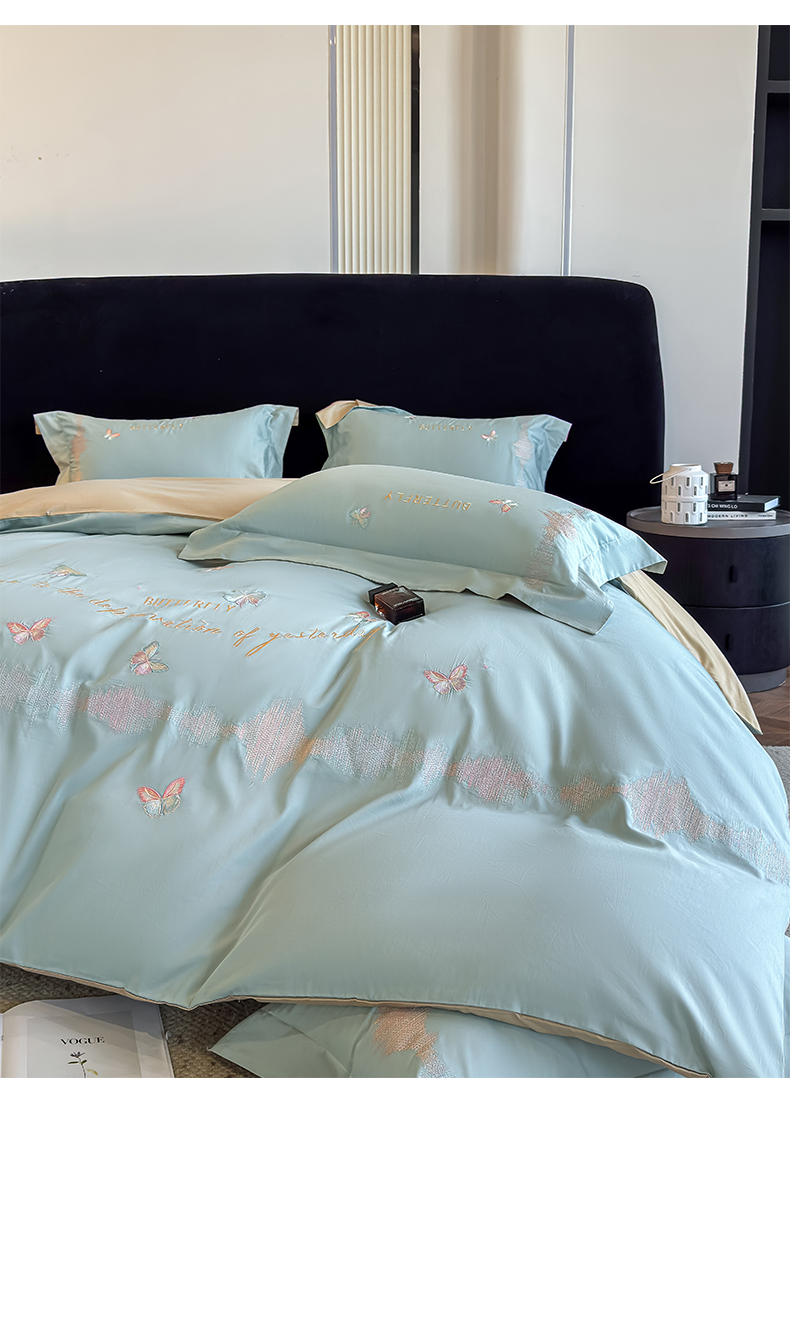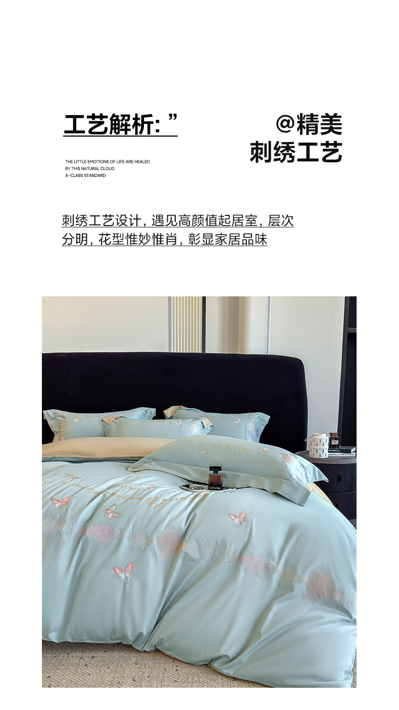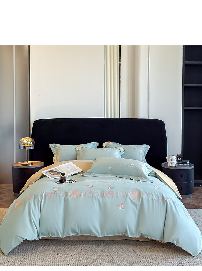 当前位置: 91家纺网 > 商品网购 > 床品套件 > 四件套 > 长绒棉四件套 > 欣宜家纺 2026春夏新款纯棉全棉长绒棉刺绣绣花高端礼盒四件套-漫舞 漫舞-飘蓝