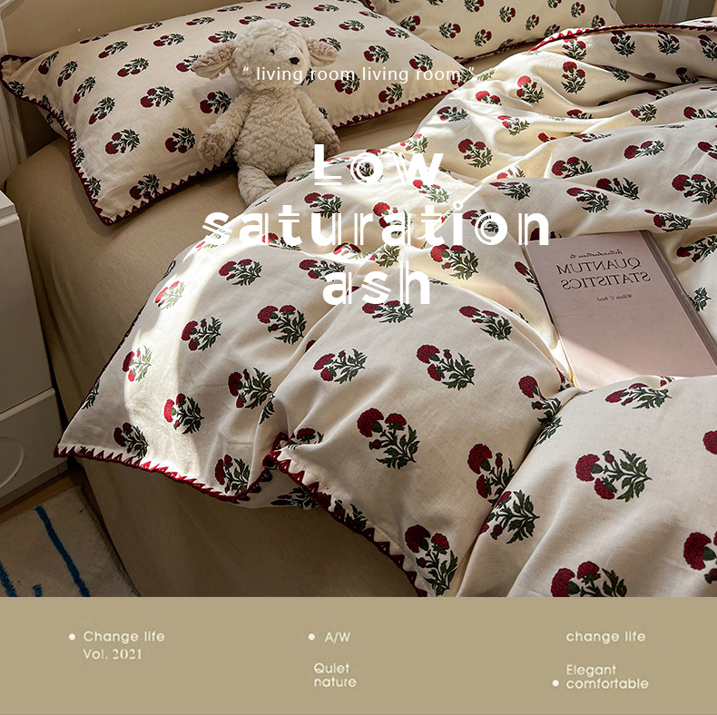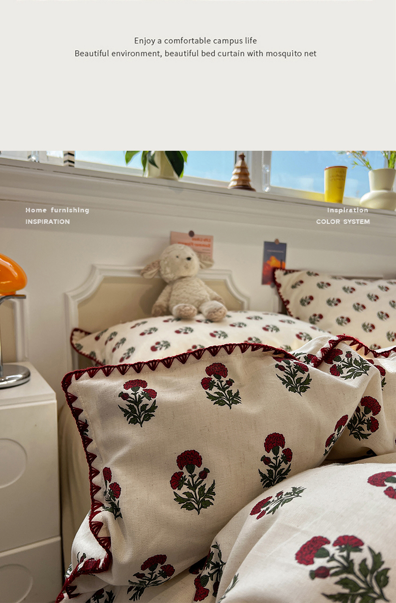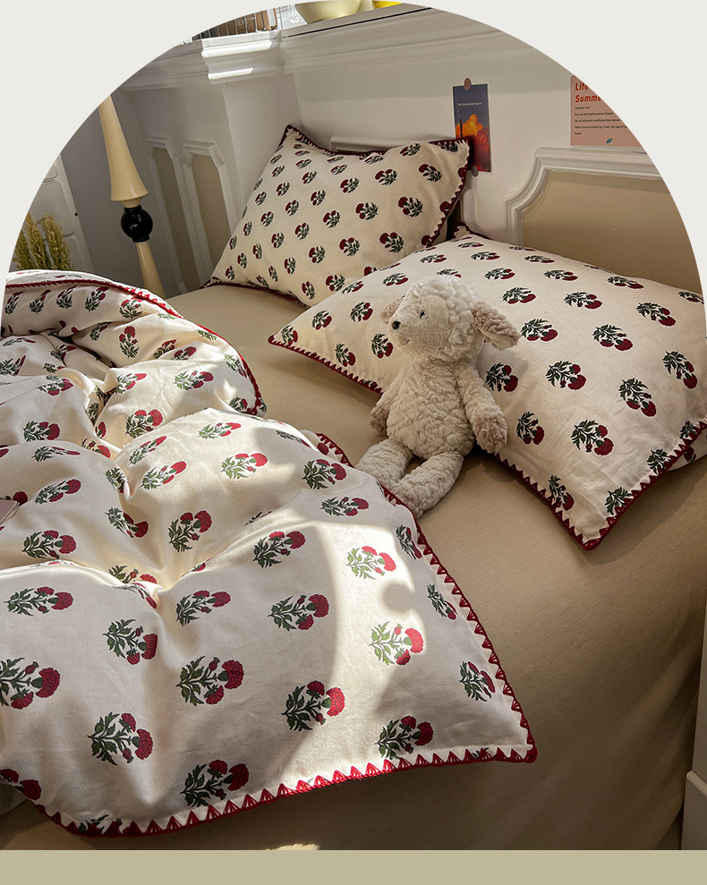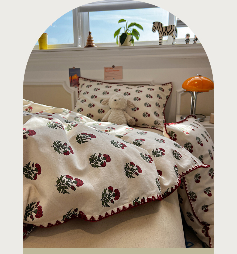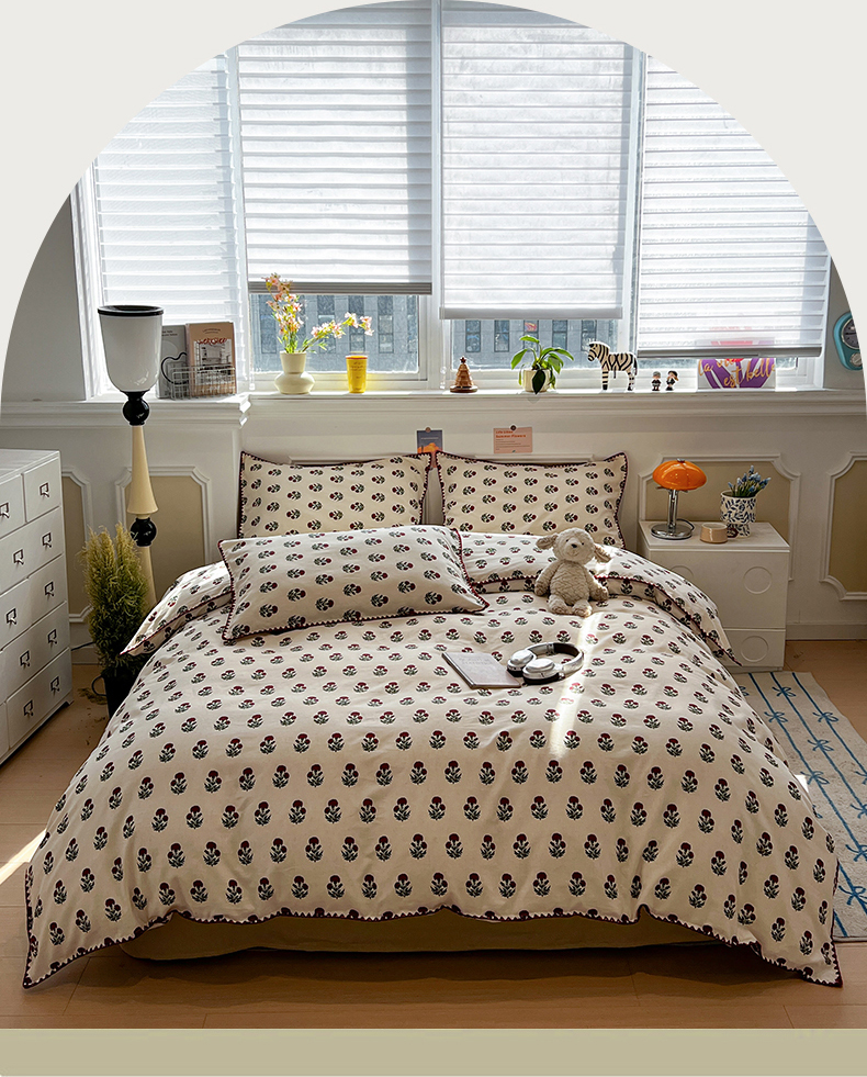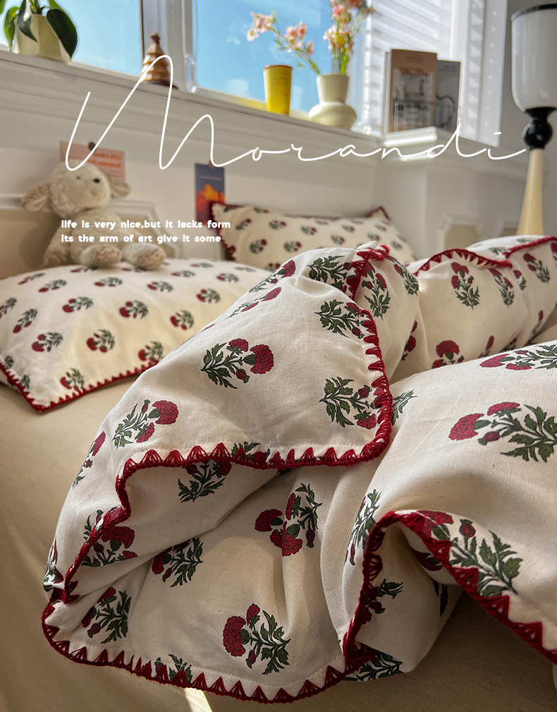 当前位置: 91家纺网 > 商品网购 > 床品套件 > 四件套 > 其它四件套 > 忆生活家纺 2026新款棉麻小清新三角针贝壳边四件套 微微