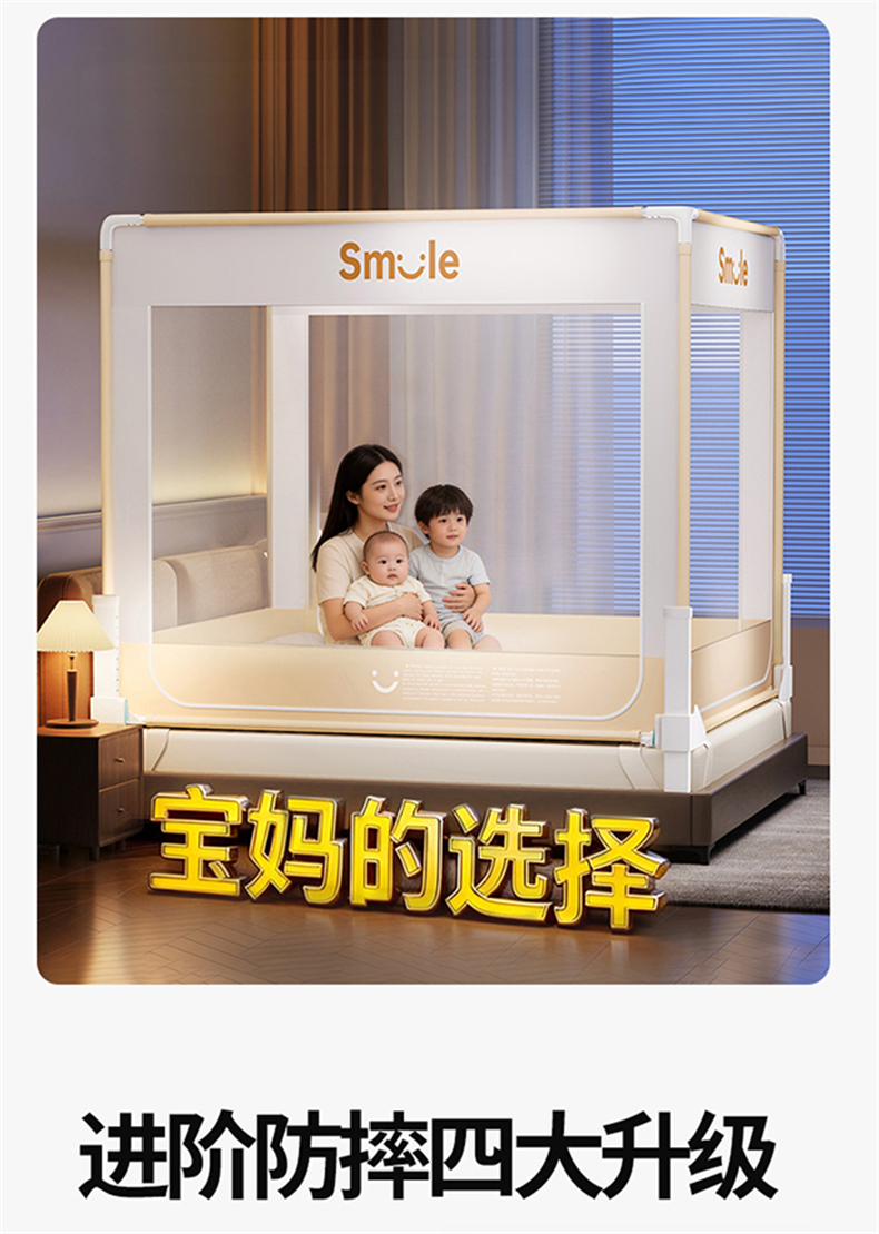 (总)佳梦家纺 2026春夏新款护栏级防摔坐床蚊帐smile系列