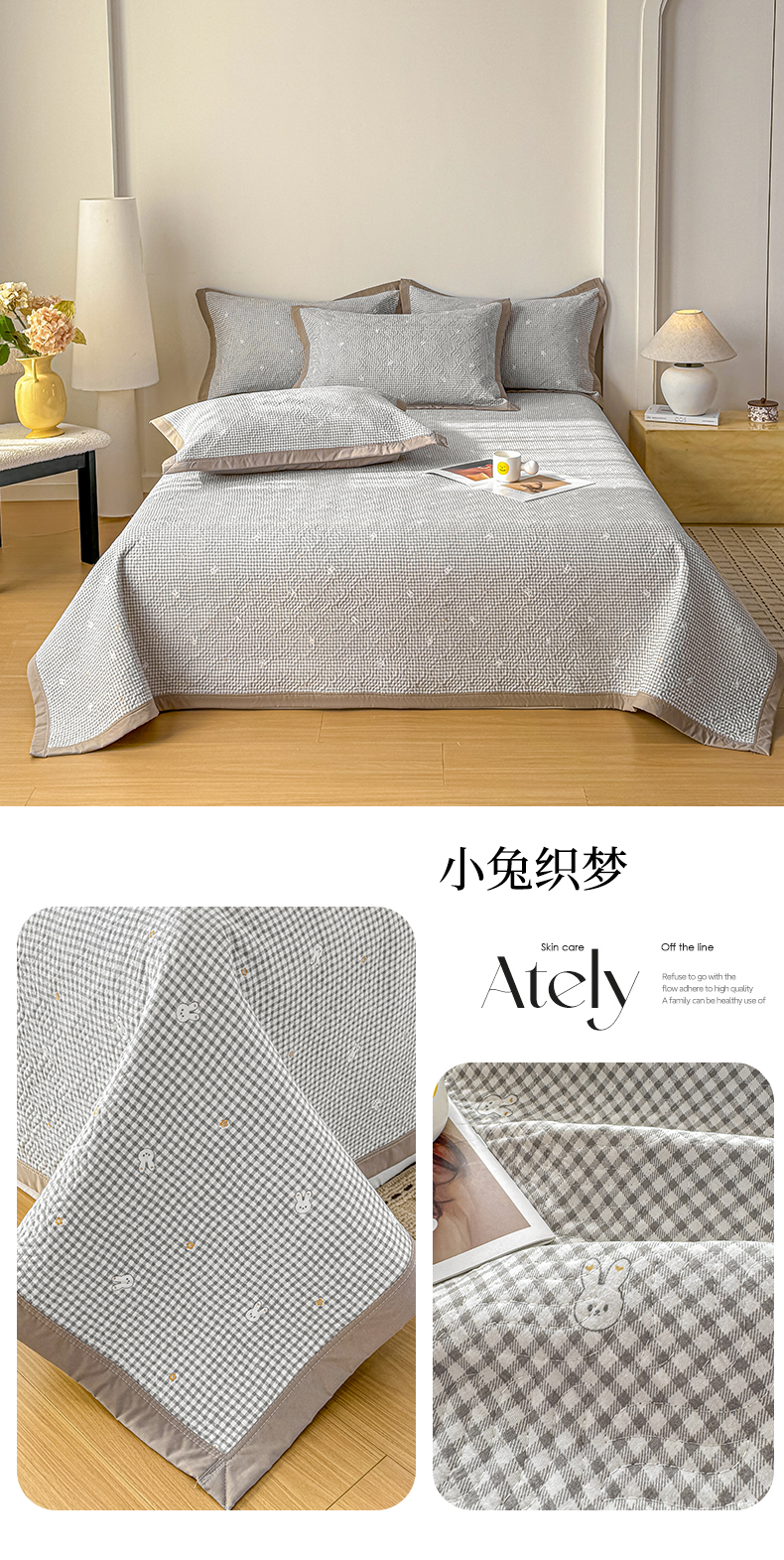 优贝家纺 2026春夏新款水洗棉小清新印花夹棉多功能床盖三件套 小兔织梦