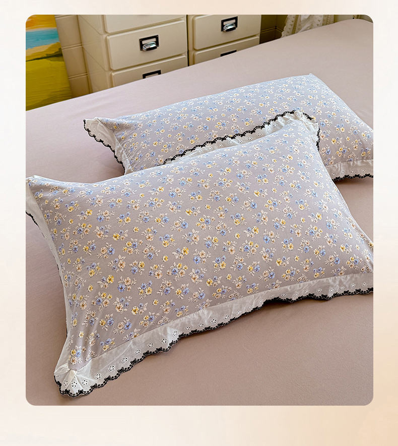 沐珩家纺 2026新款古法水洗仿棉云感棉印花单枕套 古法-浅黄云絮