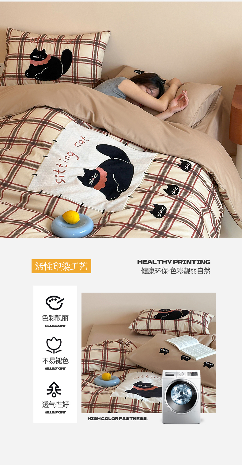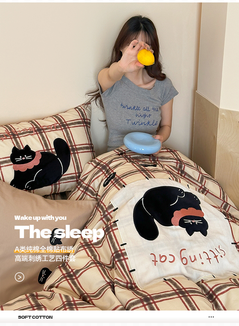 当前位置: 91家纺网 > 商品网购 > 床品套件 > 四件套 > 全棉普通四件套 > 桃子家居 新款A类纯棉全棉元气小马贴布绣高端刺绣工艺四件套 棉贴布绣-焦糖小黑猫