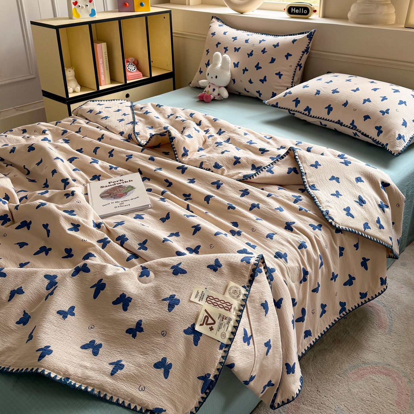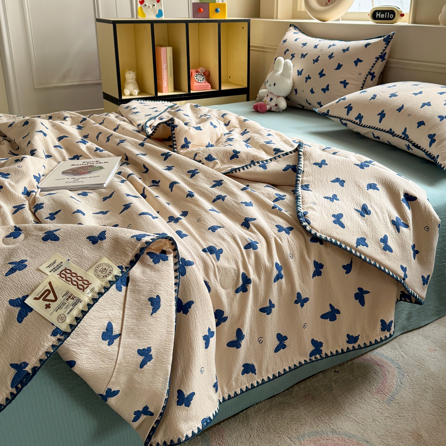 当前位置: 91家纺网 > 商品网购 > 床品套件 > 四件套 > 夏被四件套 > 星巴k家纺 2025新款春夏云感双层纱A类母婴级三角针夏被贝壳边夏凉被贝壳绣【可提供买家秀】贝壳绣-蝴蝶剪影