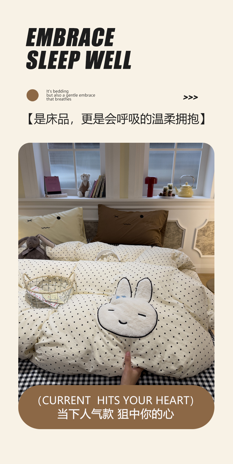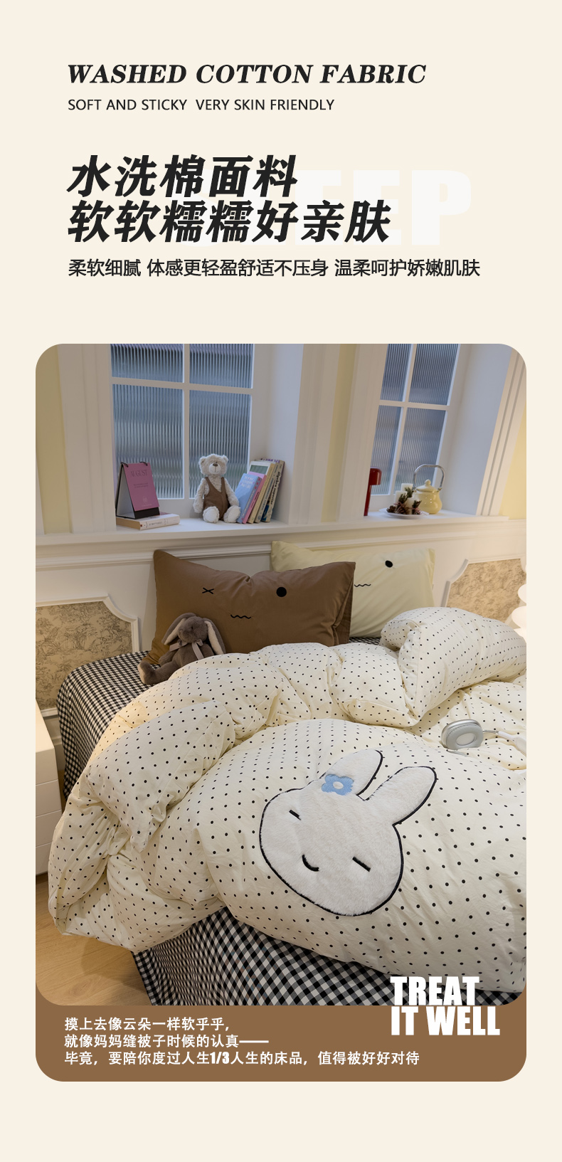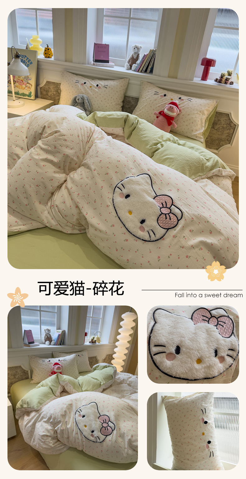 当前位置: 91家纺网 > 商品网购 > 床品套件 > 四件套 > 水洗棉四件套 > 曼谷家纺 2026年 水洗棉兔毛贴布绣四件套被套床单学生双人 菲菲兔-波点