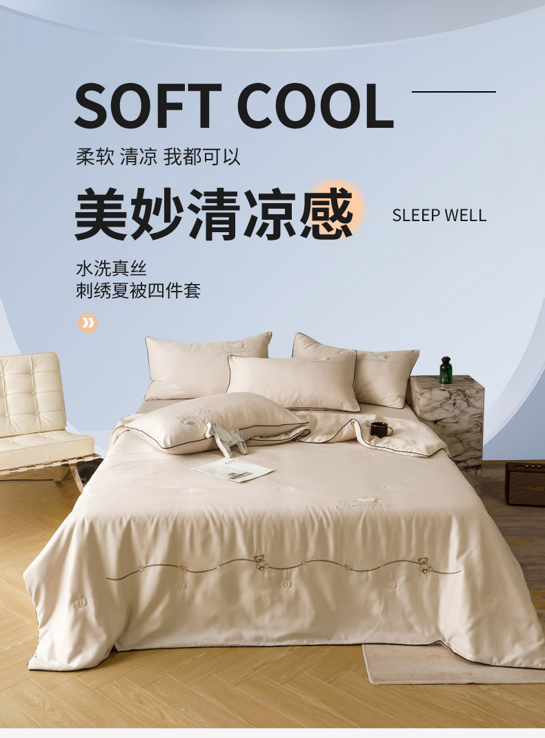 • 91家纺网 家纺一手货源 找家纺 绒世界 2026新款刺绣水洗真丝夏被四件套公主日记系列-风格二 公主日记-香槟