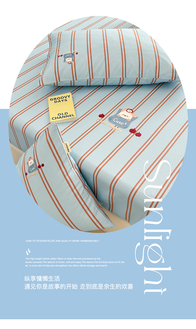 商品名称:卧趣家纺 2026新款全棉老粗布凉席席子床笠单件床笠单品单床笠绒布贴系列 口袋萌宠