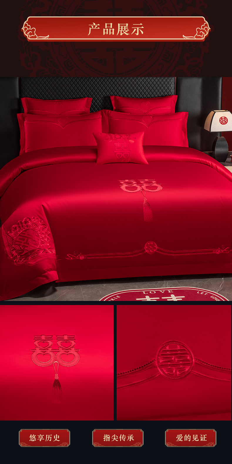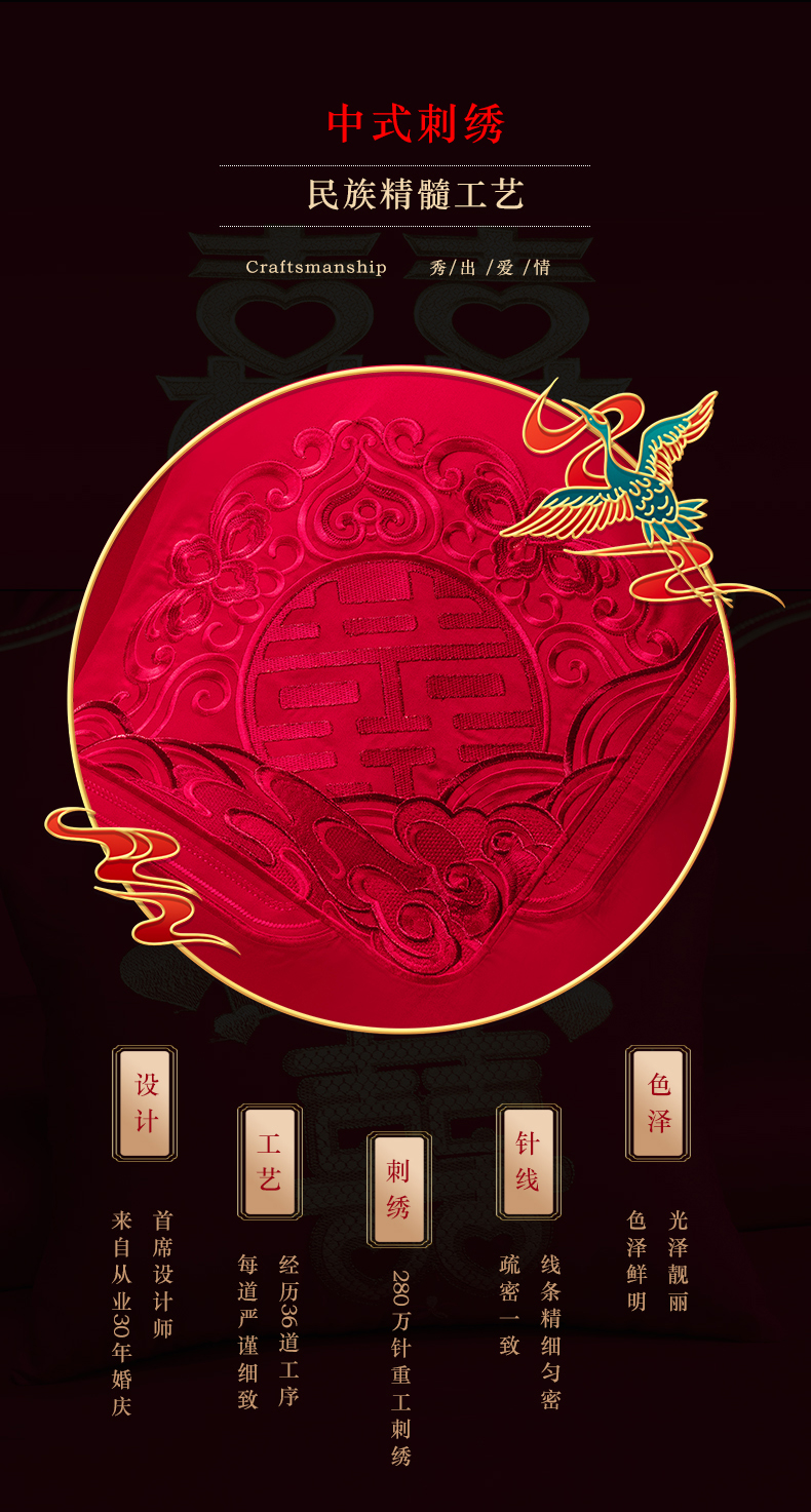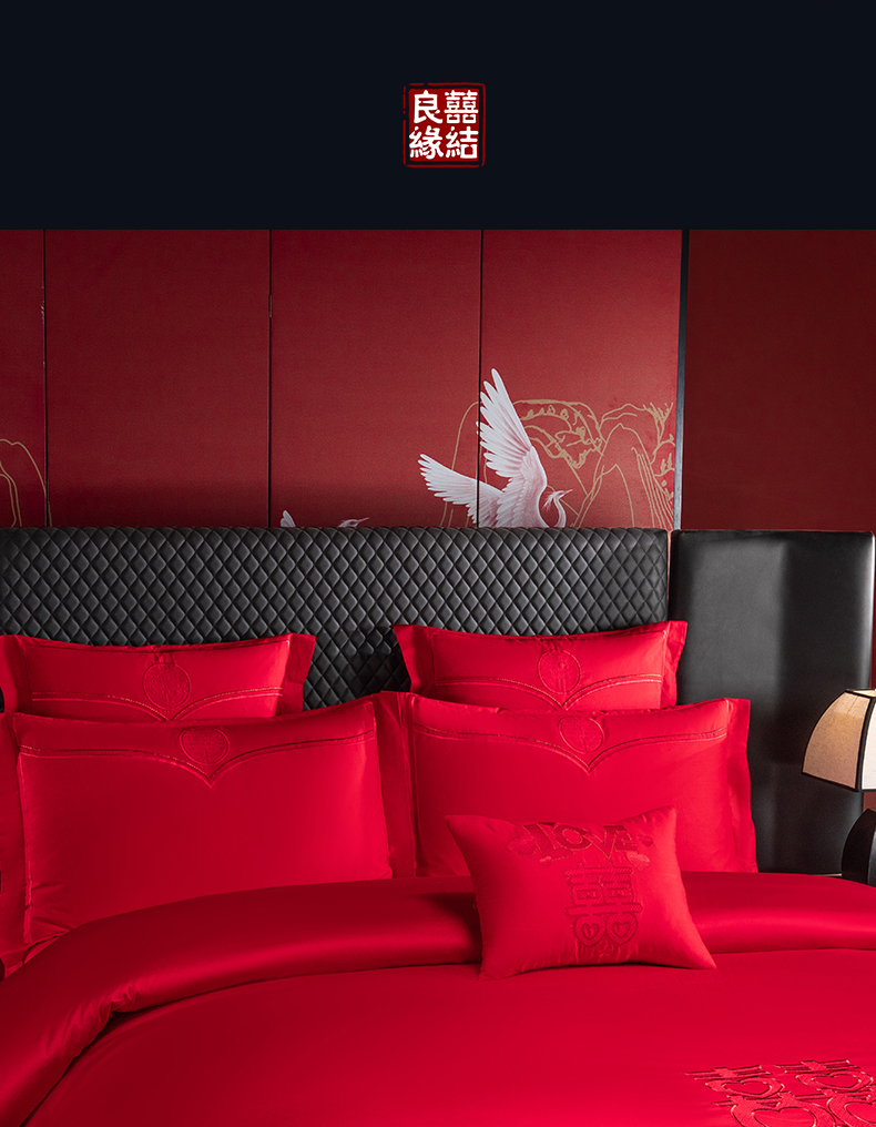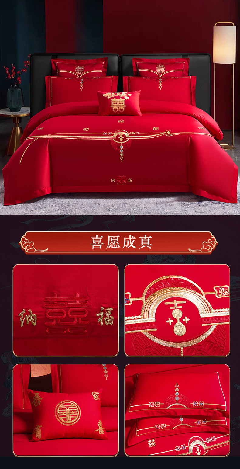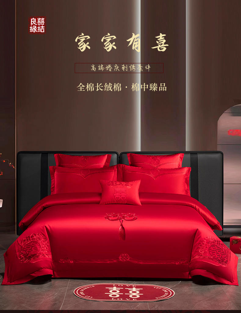 当前位置: 91家纺网 > 商品网购 > 床品套件 > 四件套 > 婚庆四件套 > 富之雅婚庆 2026新款全棉刺绣长绒棉婚庆四件套多件套 家家有喜(本线绣)