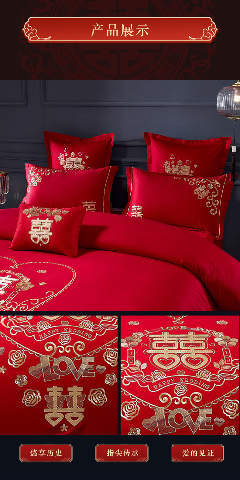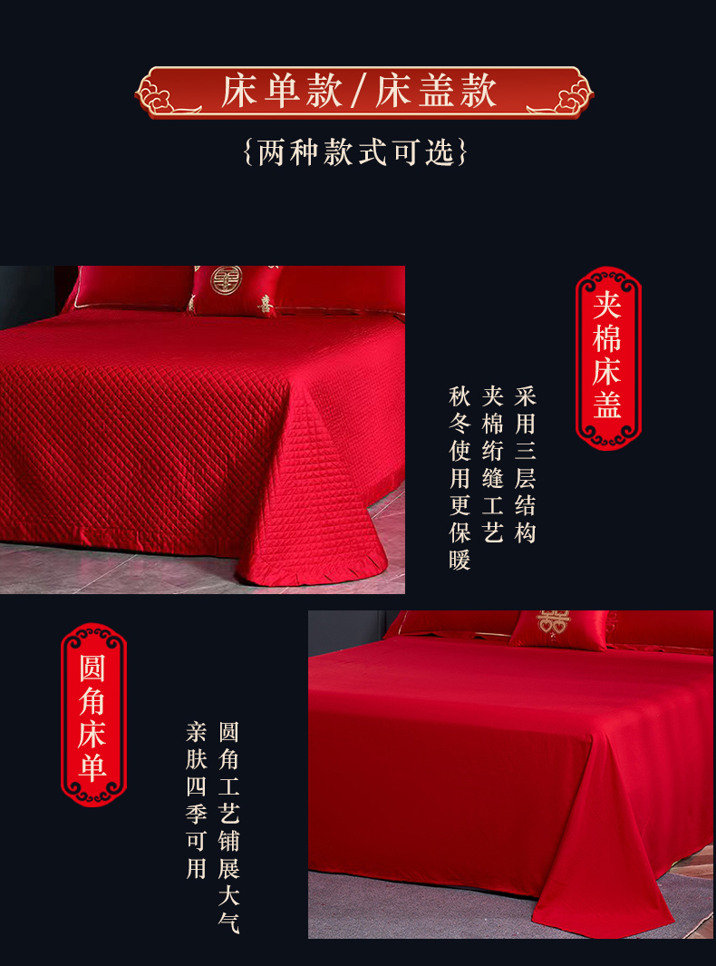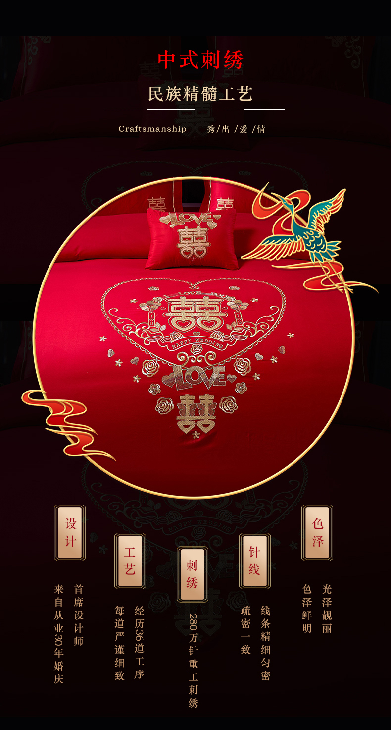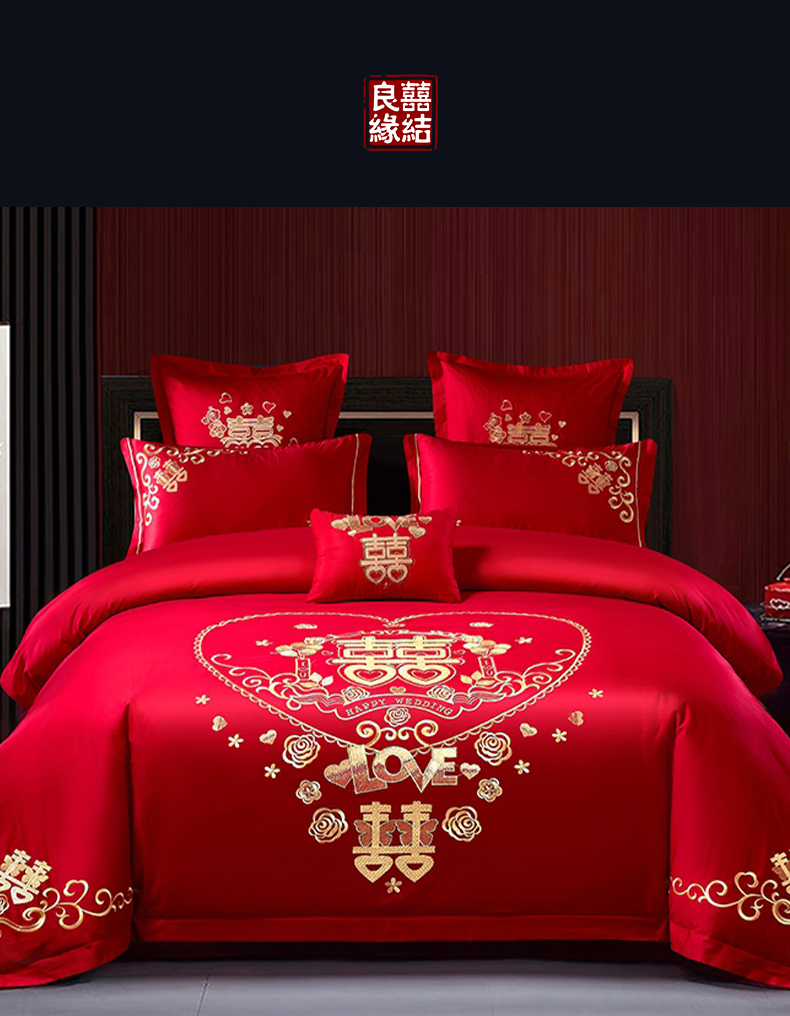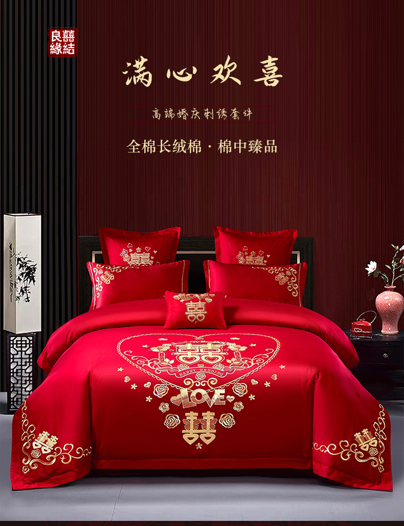 当前位置: 91家纺网 > 商品网购 > 床品套件 > 四件套 > 婚庆四件套 > 富之雅婚庆 2026新款全棉刺绣长绒棉婚庆四件套多件套 满心欢喜