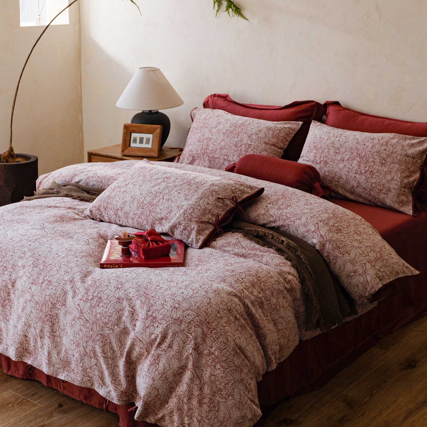 涞澳家纺 2026新款全棉纯棉色织提花(婚庆)四件套 赤韵花影