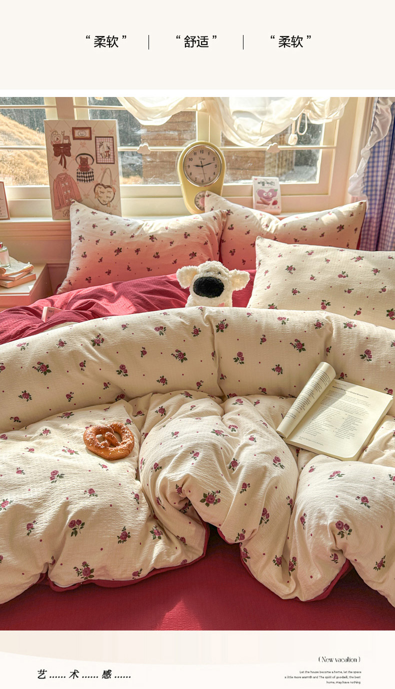 当前位置: 91家纺网 > 商品网购 > 床品套件 > 四件套 > 其它四件套 > 柒月家居 2026新款云感皱皱纱小清新木棉四件套 玫瑰园
