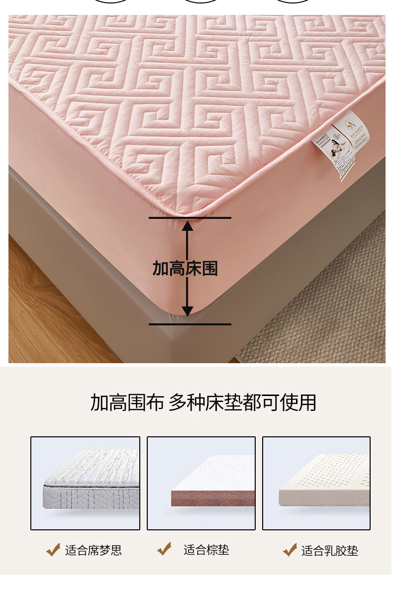 当前位置: 91家纺网 > 商品网购 > 床上用品 > 床笠 > 三盛源 2026新款A类防水夹棉床笠加厚席梦思床垫保护套床笠罩防滑-简奢系列(支持小批量定制尺寸) 简奢系列-桃粉
