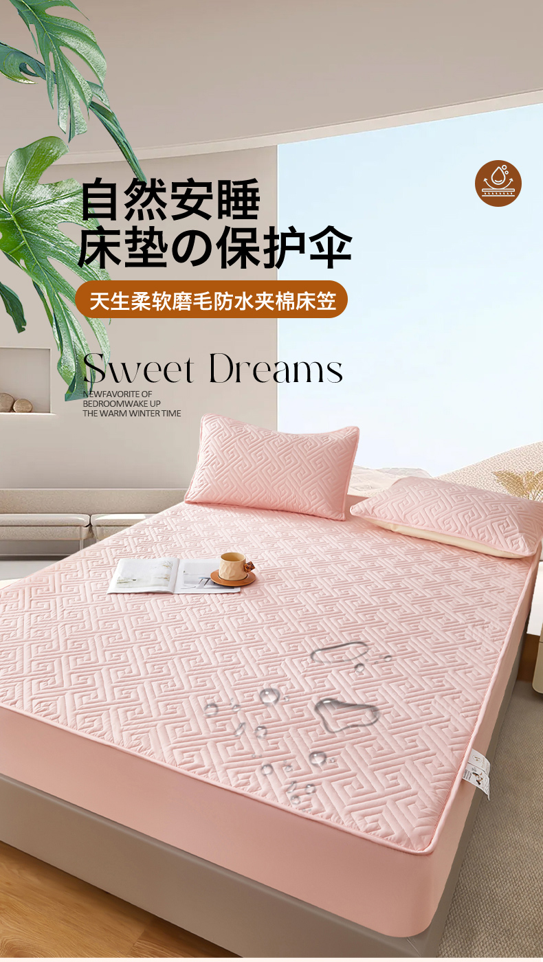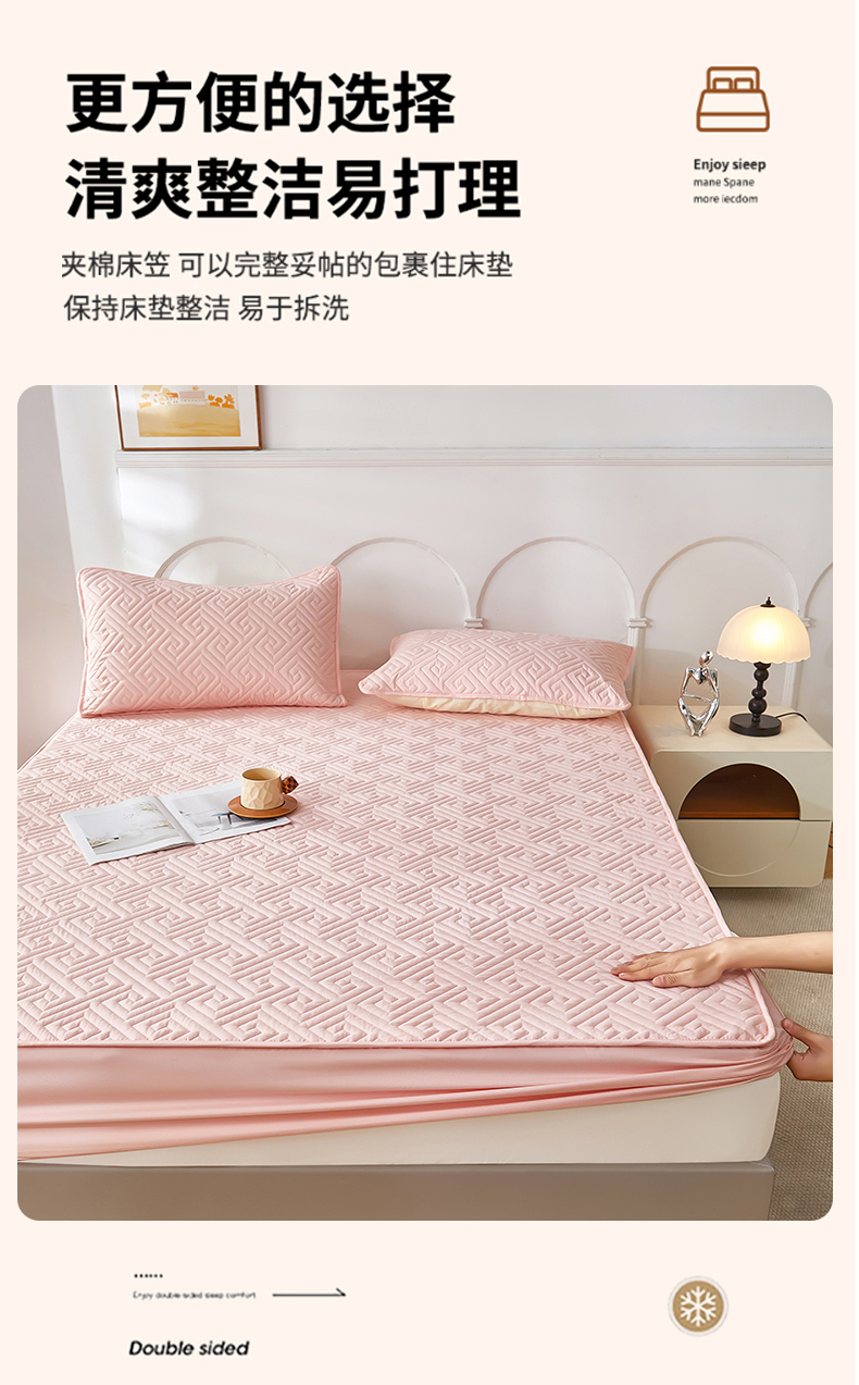 三盛源 2026新款A类防水夹棉床笠加厚席梦思床垫保护套床笠罩防滑-简奢系列(支持小批量定制尺寸) 简奢系列-桃粉