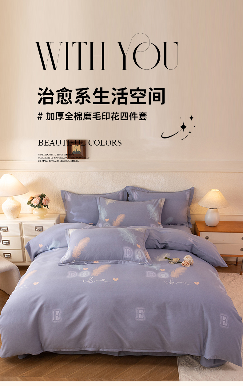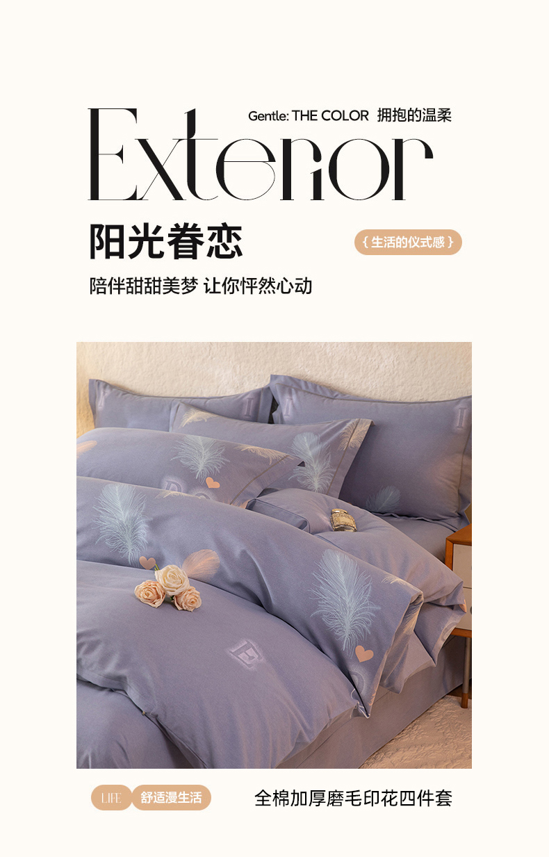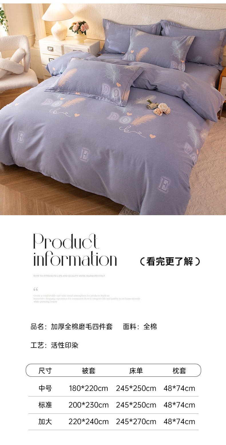 当前位置: 91家纺网 > 商品网购 > 床品套件 > 四件套 > 全棉普通四件套 > 磨毛世家家纺 2026新款多规格铂金磨毛纯棉加厚全棉磨毛四件套 永恒之羽-灰