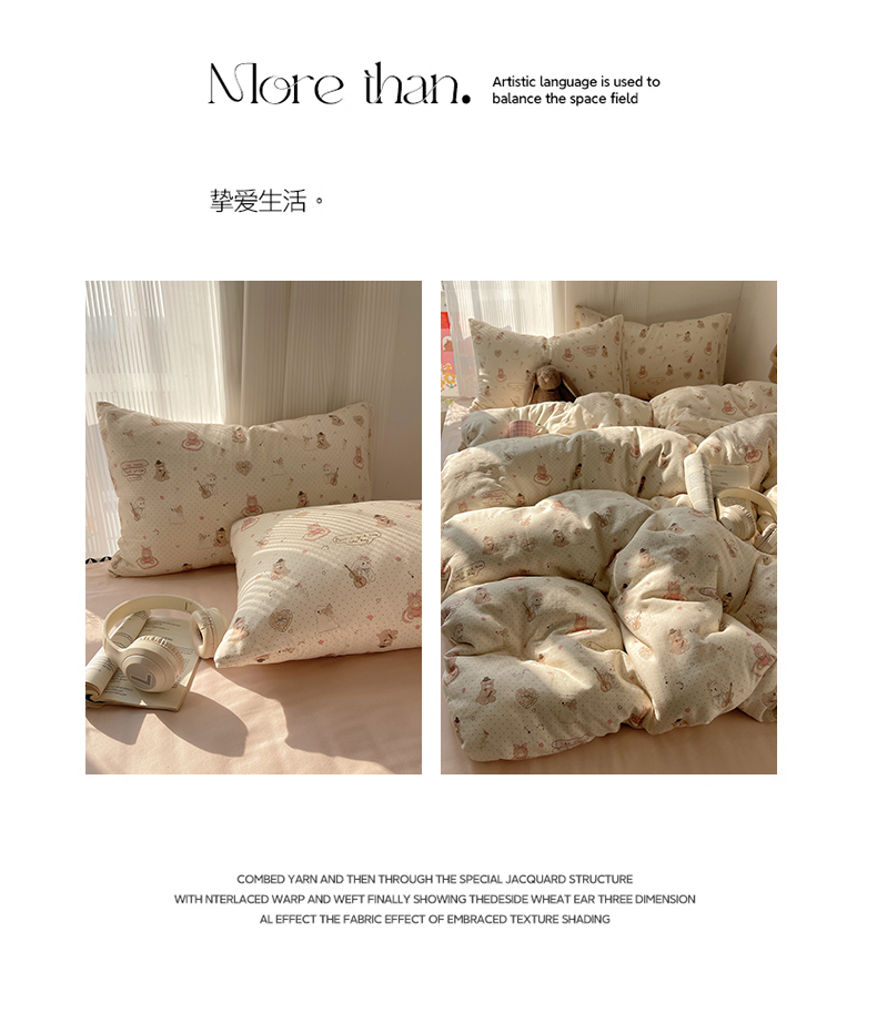 (总)萝莉家纺 2026新款全棉纯棉色织双层纱提花四件套,小熊头,爱心狗,豹纹猫,布偶熊,点点樱桃,翘翘马