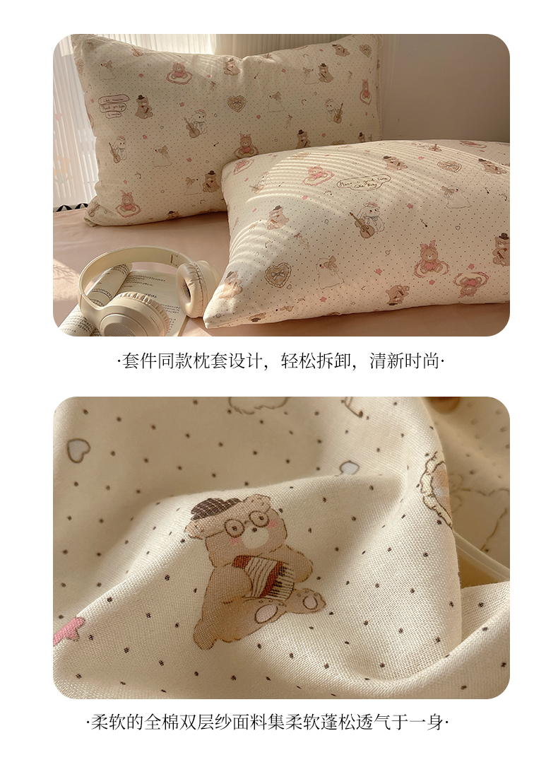 萝莉家纺 2026新款全棉双层纱四件套 音乐派对