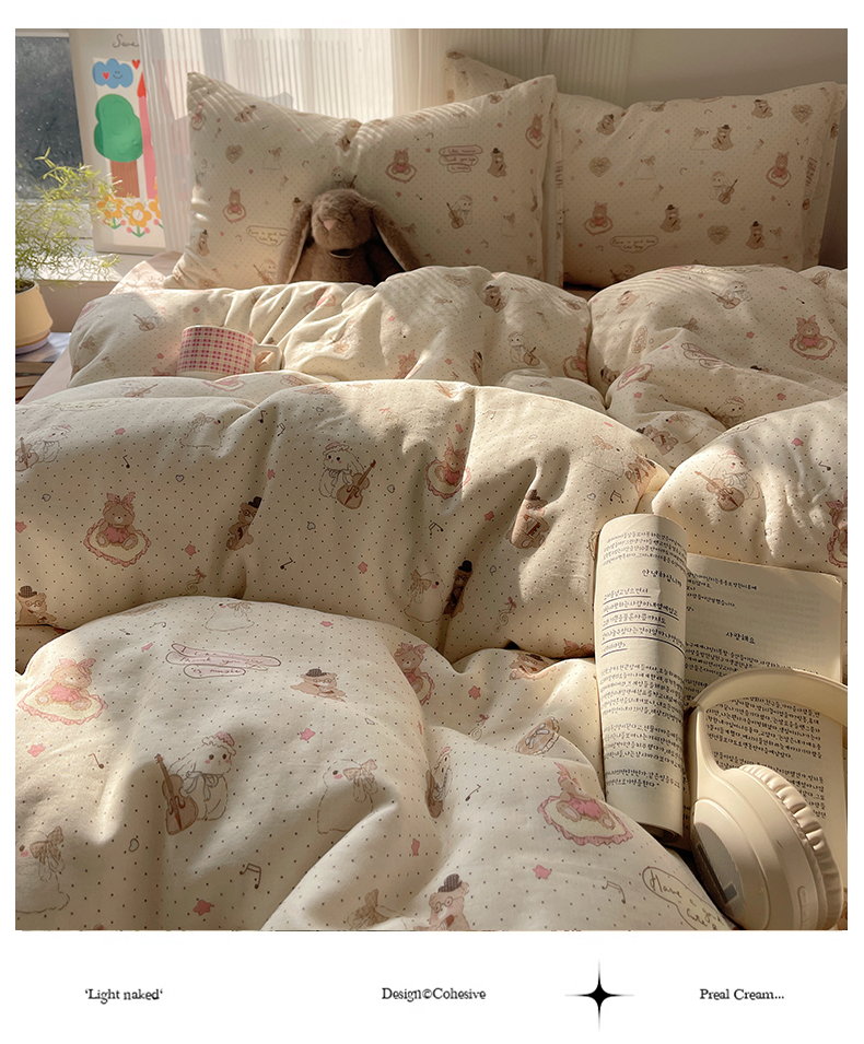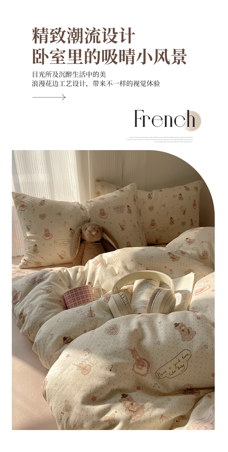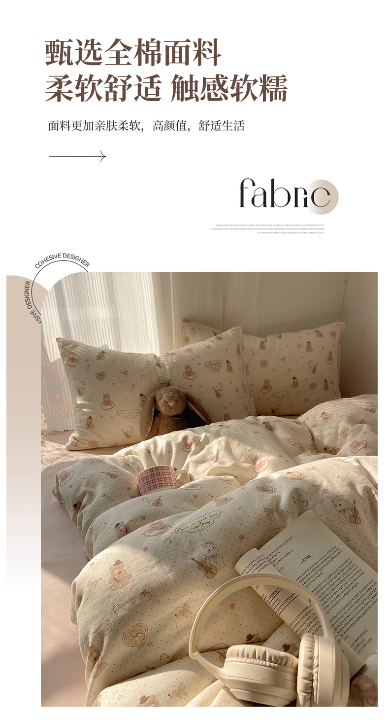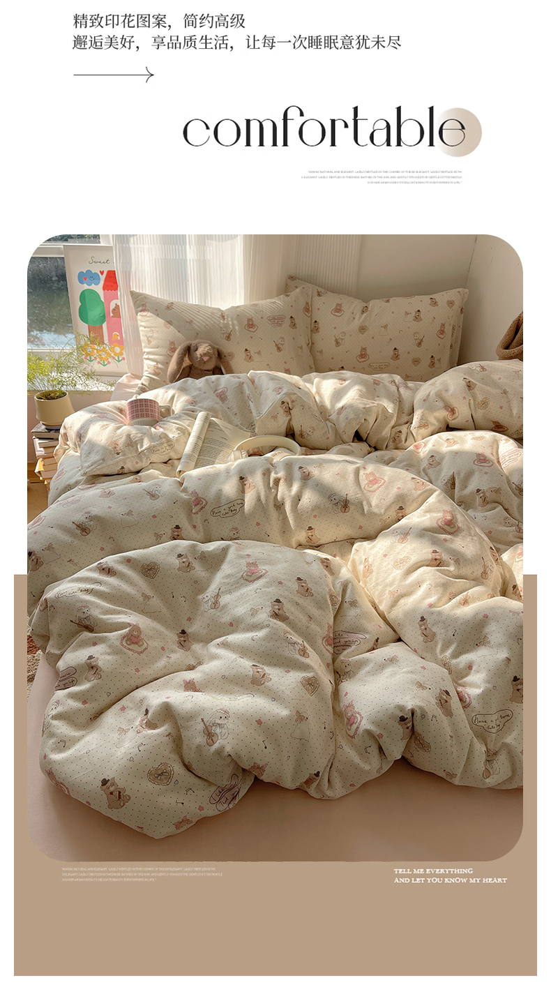(总)萝莉家纺 2025新款全棉小清新高品质数码印花磨毛四件套,斑点狗狗,波点草莓,多彩草莓,美味蛋糕,甜品熊,涂鸦日记,熊熊日记,英伦熊,樱桃多多,组合