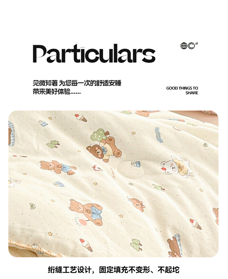 • 91家纺网 家纺一手货源 找家纺 盛秋家纺 2026新款三角针水洗棉贝壳边印花夏被系列 熊熊乐园+奶茶