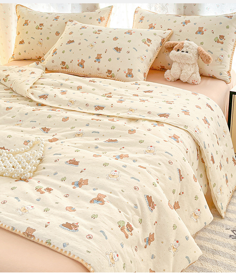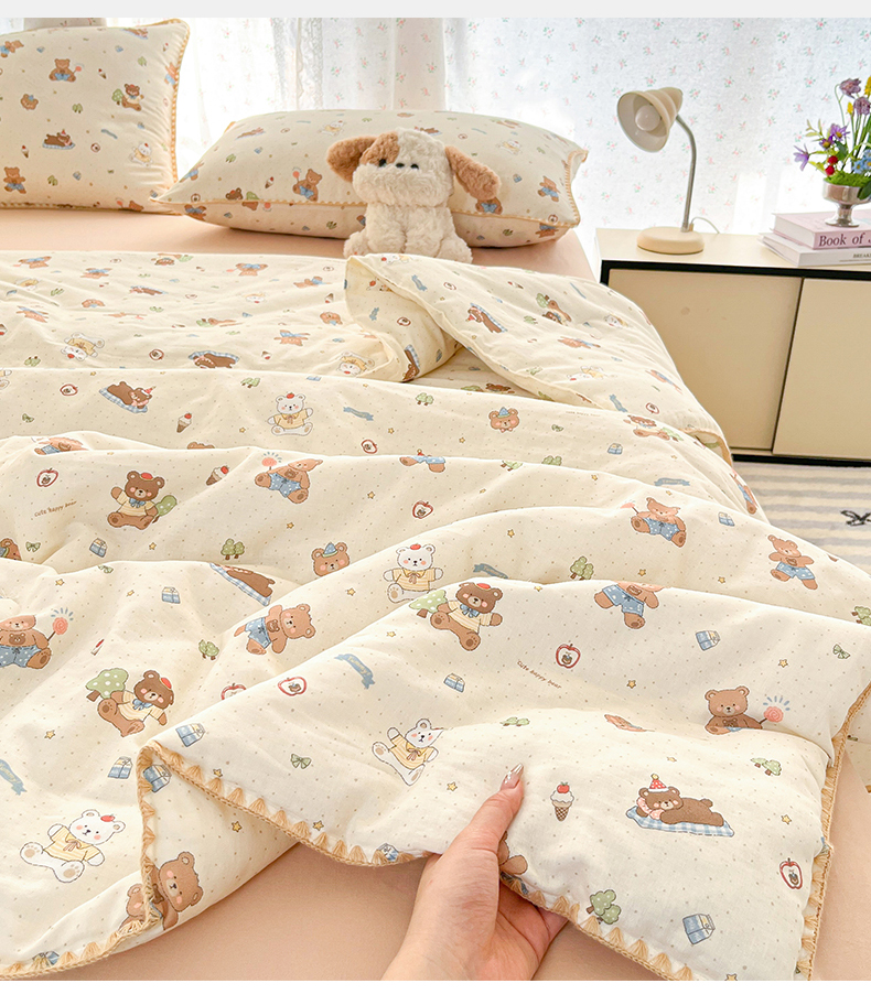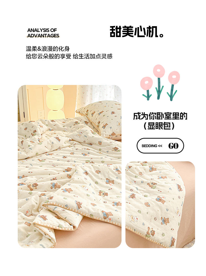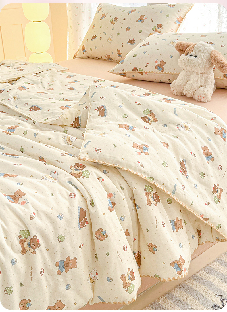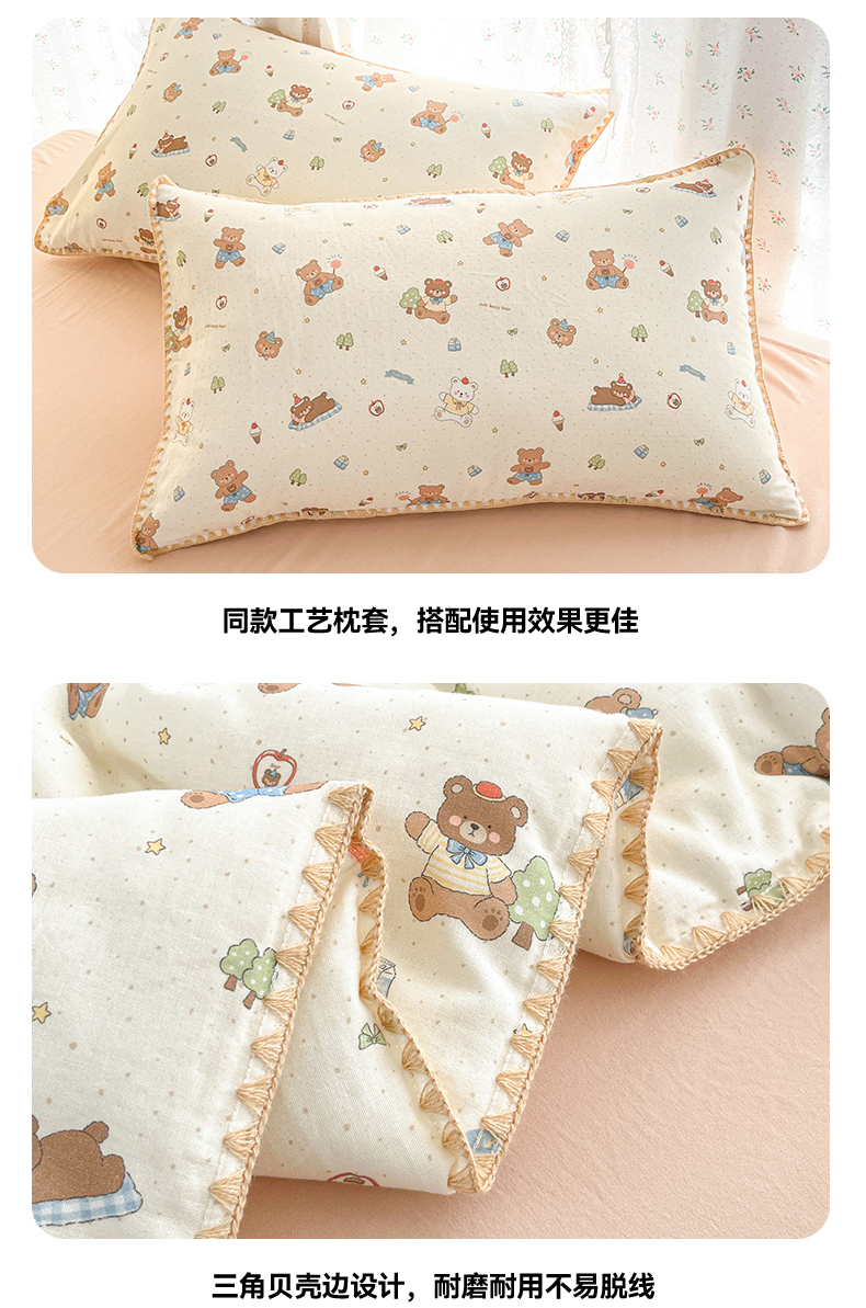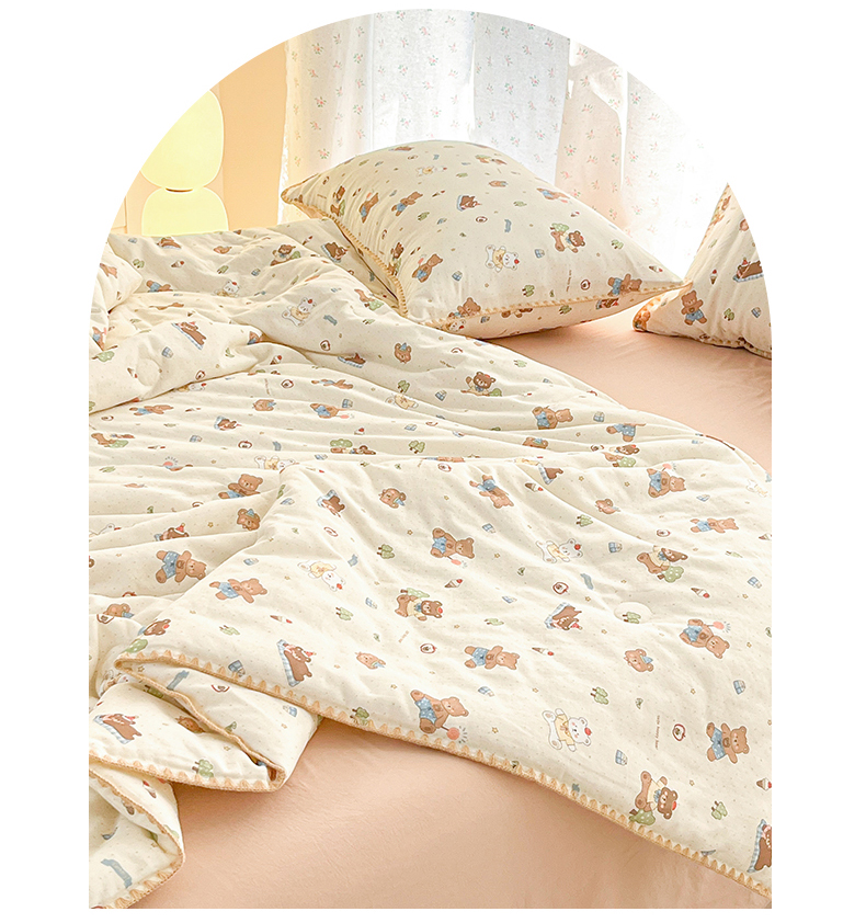 盛秋家纺 2026新款三角针水洗棉贝壳边印花夏被系列 熊熊乐园+奶茶