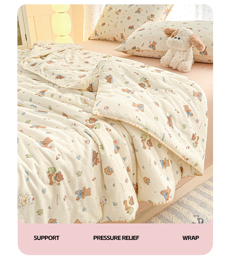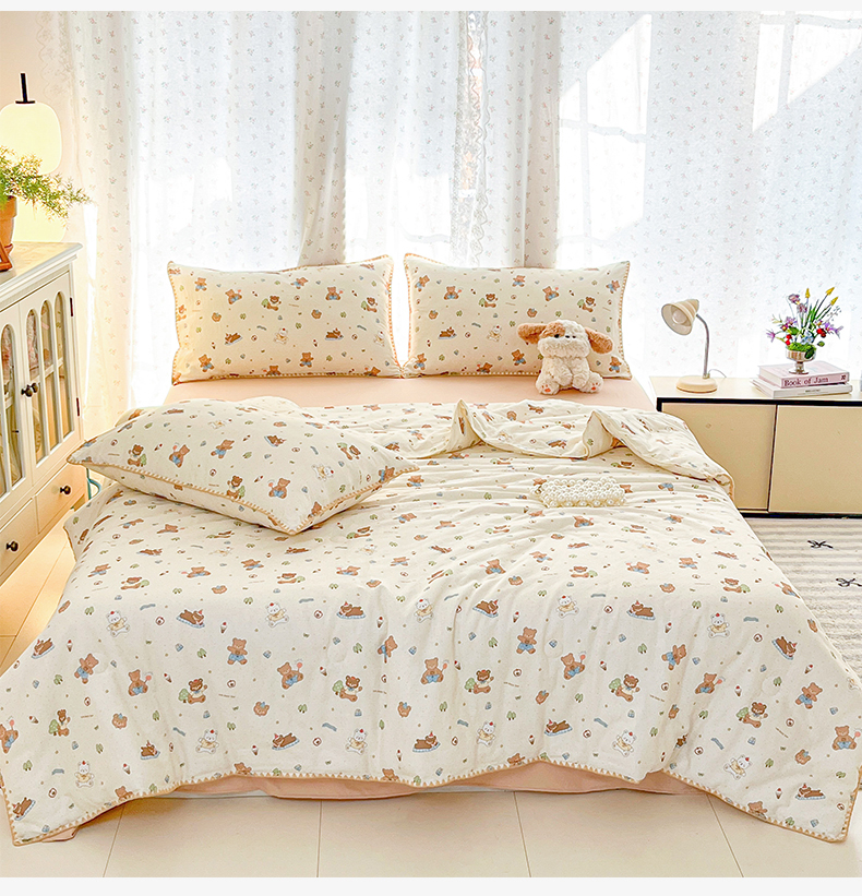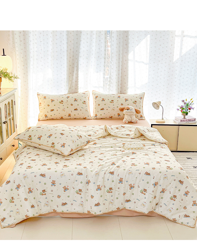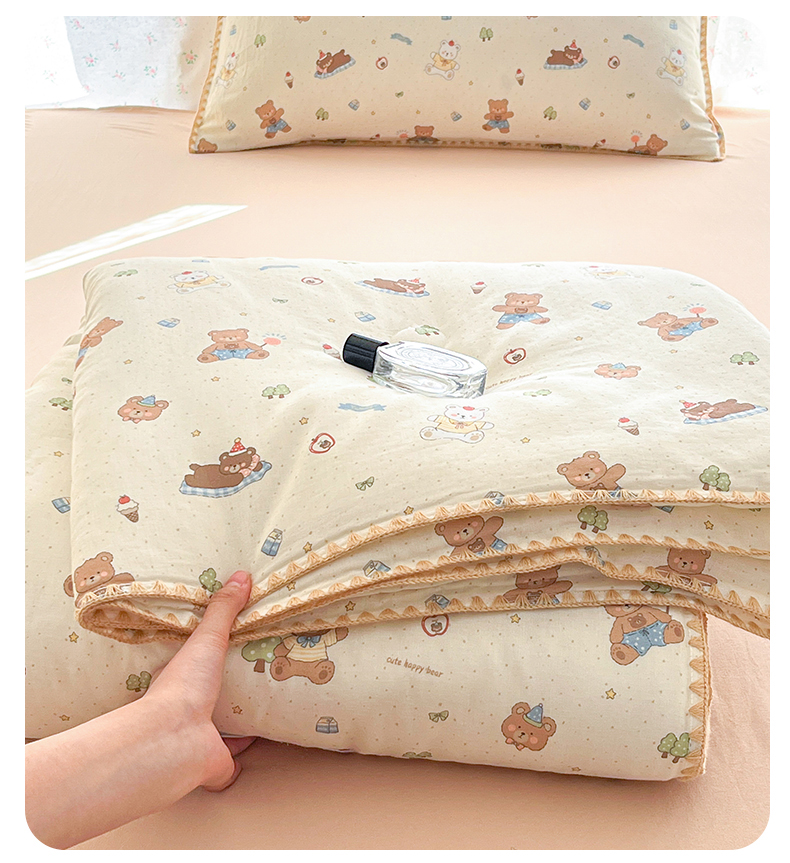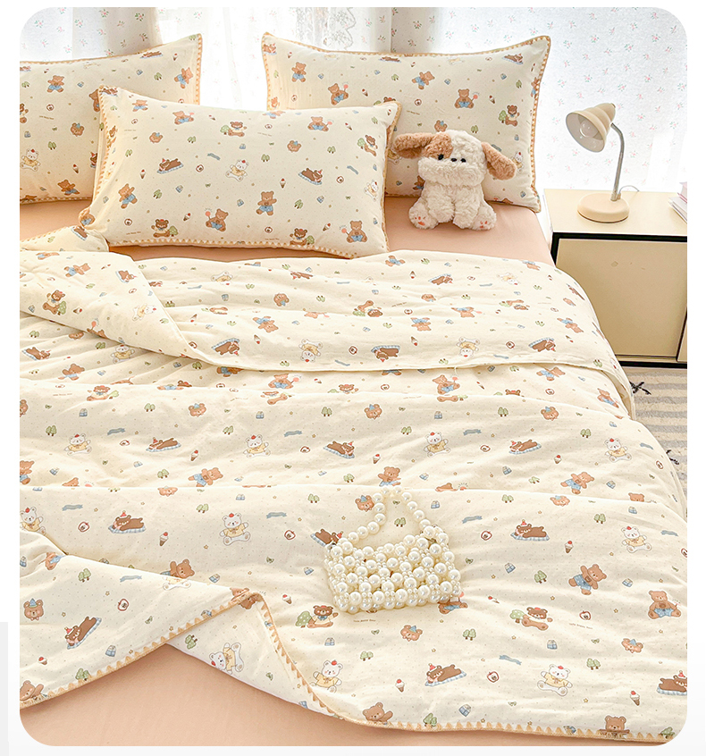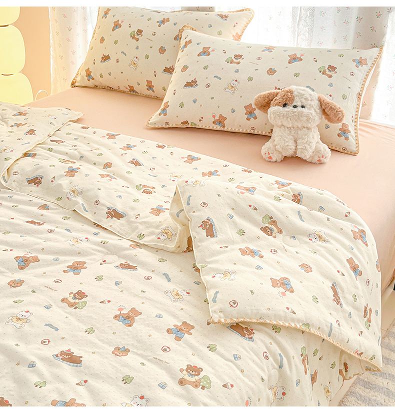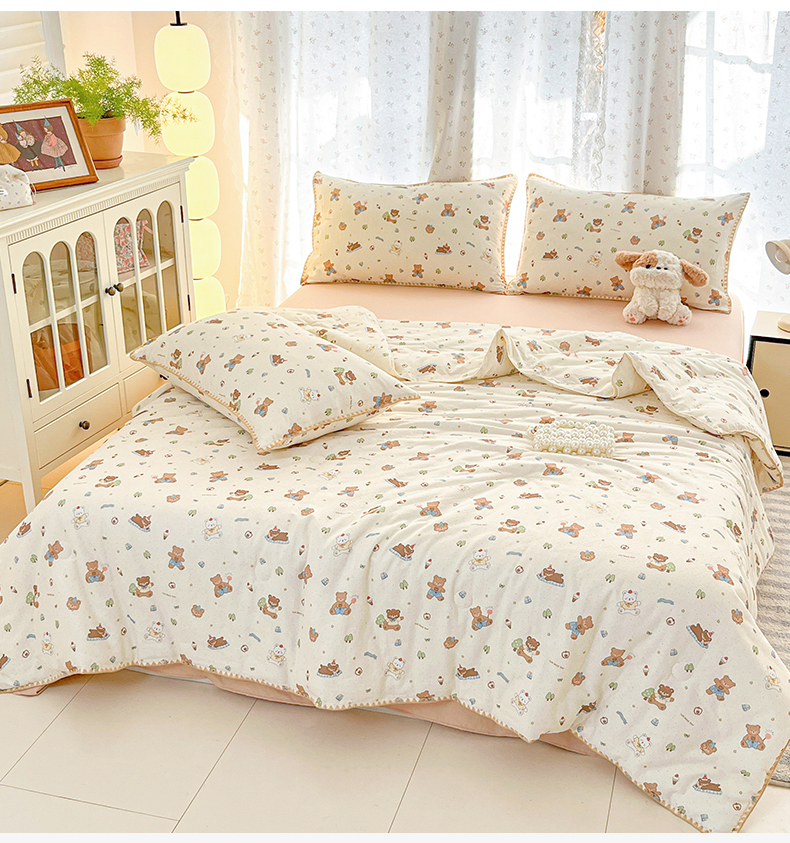盛秋家纺 2026新款三角针水洗棉贝壳边印花夏被系列 熊熊乐园+奶茶