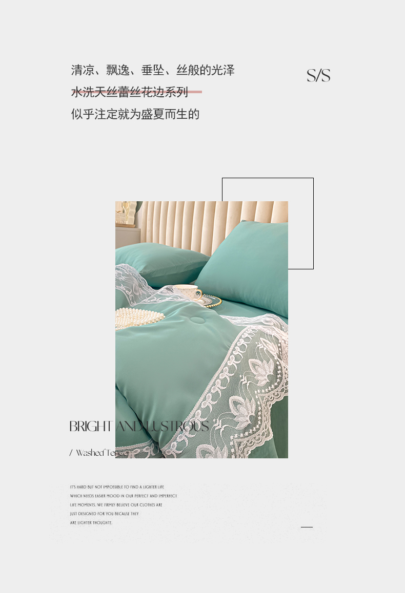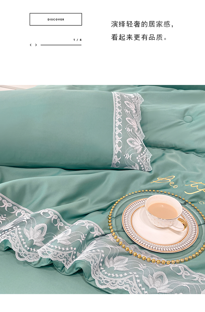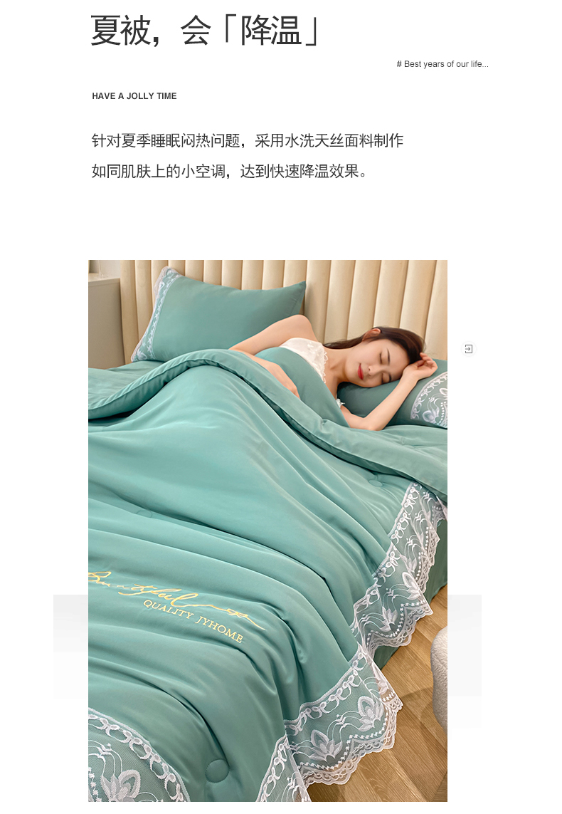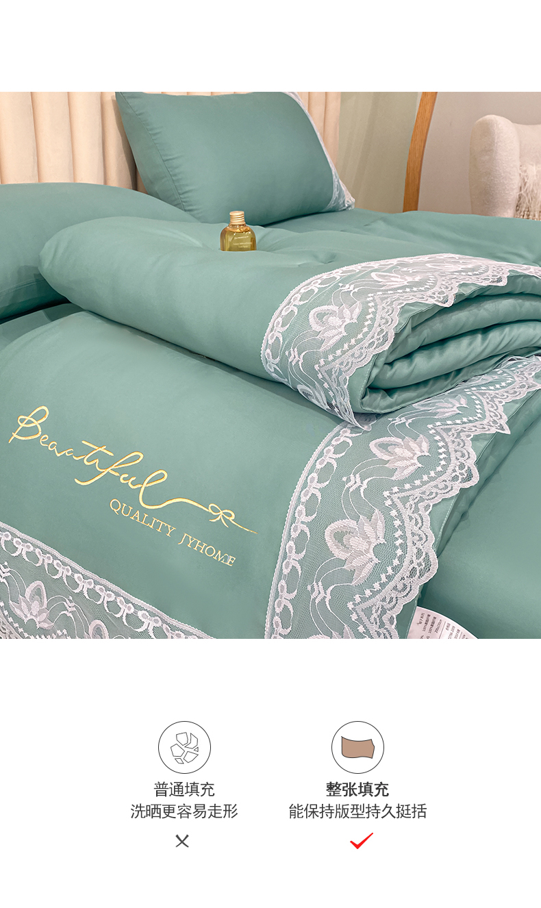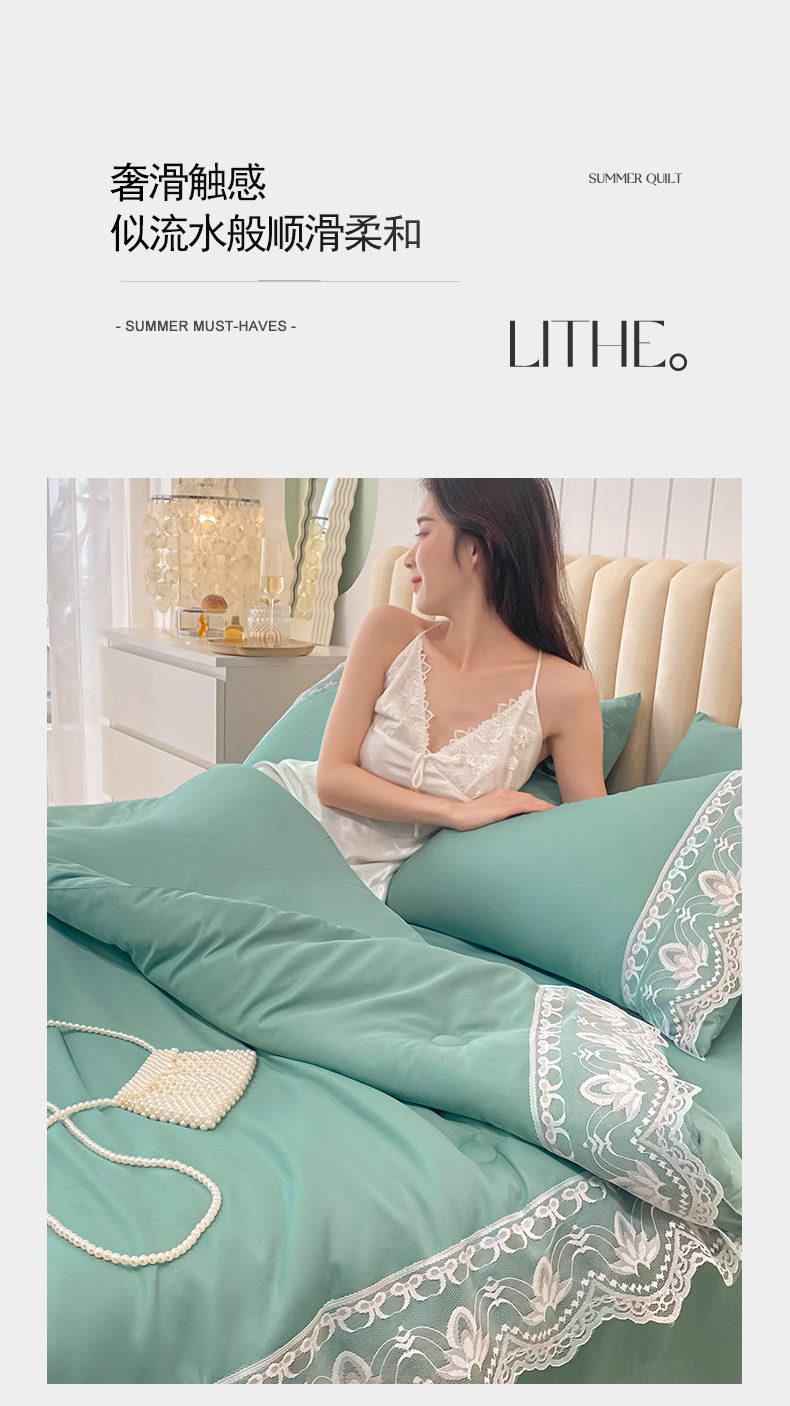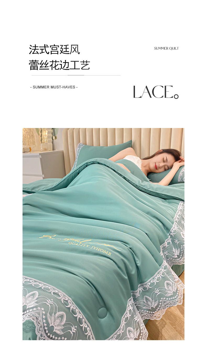 • 91家纺网 家纺一手货源 找家纺 益多眠 2026新款水洗天丝蕾丝花边夏被夏凉被空调被-公主 公主-琉璃绿