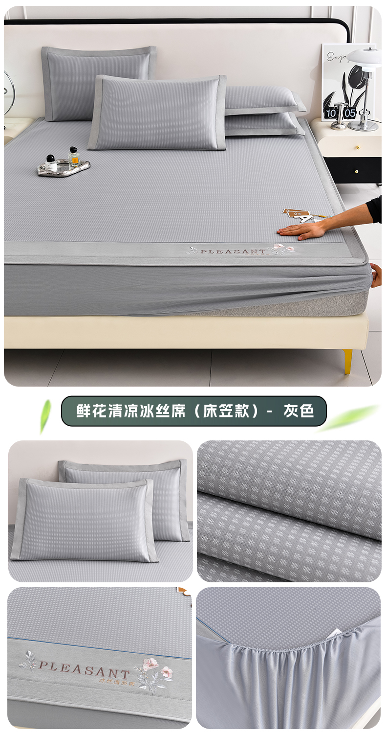 (总)小牛席业 2026春夏新款轻奢半定位凉感冰丝席凉席席子系列床笠款,轻奢半定位-粉色 床笠款,轻奢半定位-灰色 床笠款,轻奢半定位-蓝色 床笠款,轻奢半定位-抹茶 床笠款,轻奢半定位-香槟 床笠款