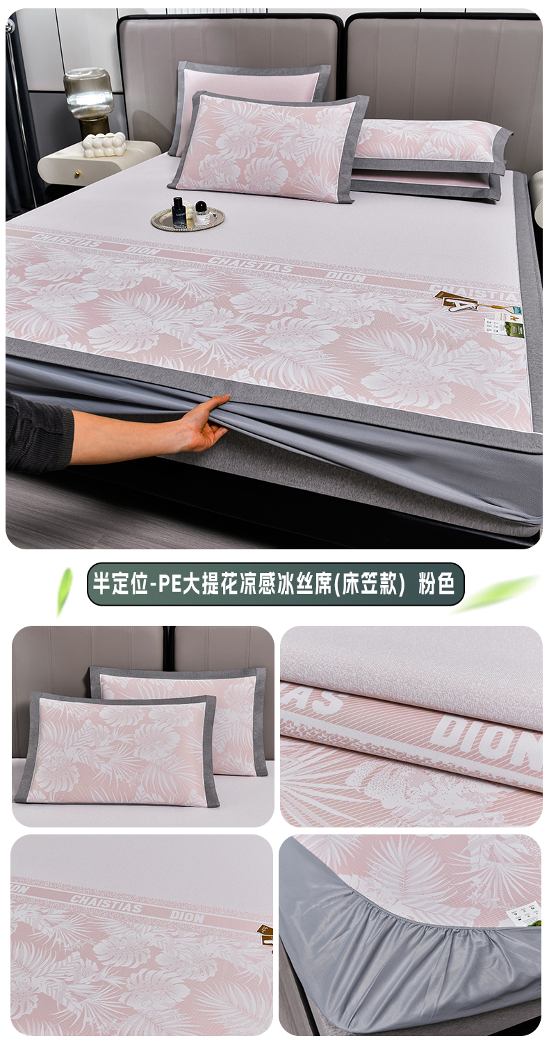 (总)小牛席业 2026春夏新款轻奢半定位凉感冰丝席凉席席子系列床笠款,轻奢半定位-粉色 床笠款,轻奢半定位-灰色 床笠款,轻奢半定位-蓝色 床笠款,轻奢半定位-抹茶 床笠款,轻奢半定位-香槟 床笠款
