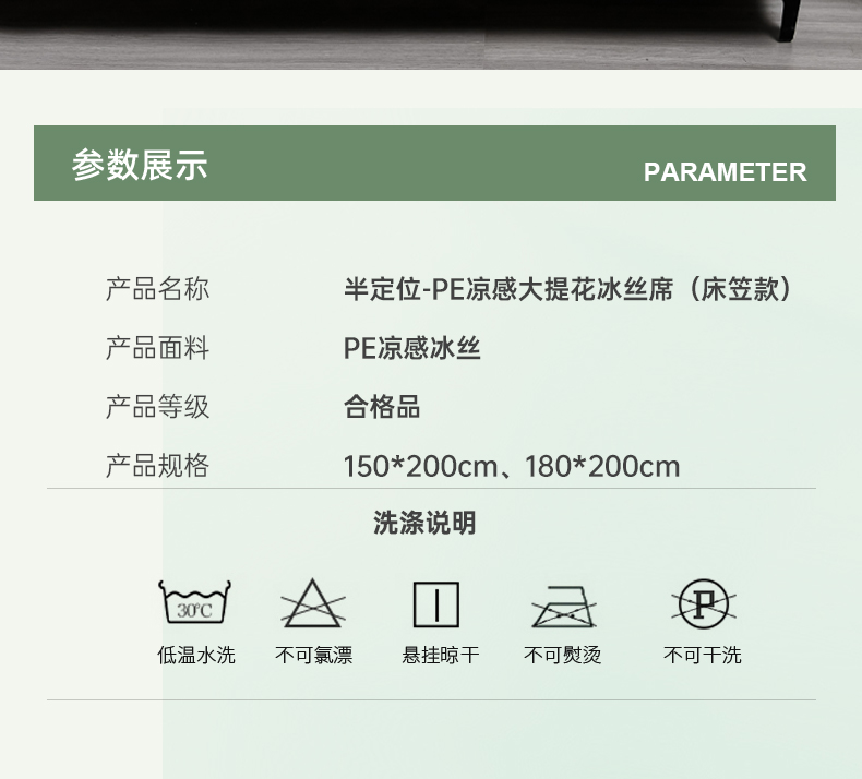 商品名称:(总)小牛席业 2026新款PE半定位大提花凉感冰丝系列(床笠款)凉席藤席冰藤席竹席乳胶席凉豆豆席空调席